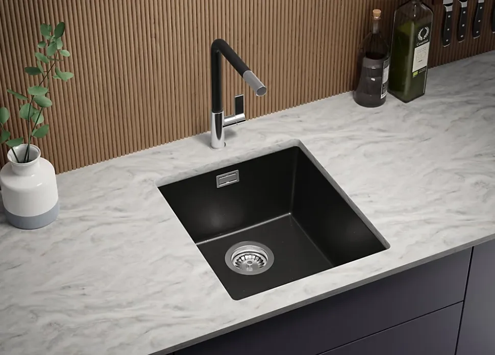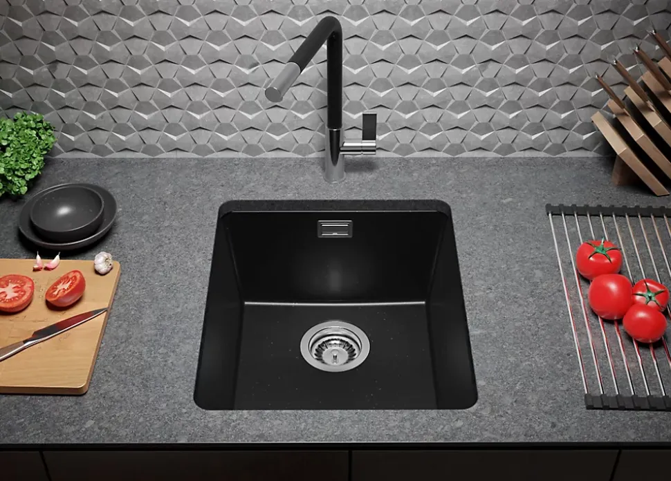 - ✅ ÉLÉGANT, évier 1-bac encastrable de très haute qualité sans égouttoir, s’adapte parfaitement à des sous-meubles supérieurs à 45 cm, Dimensions extérieures: 410 x 470 mm, Profondeur du bac principale: 180 mm et robinet de cuisine avec bec pivotant à 360 degré, s’adapte dans un trou de montage de 35 mm (standard du marché)