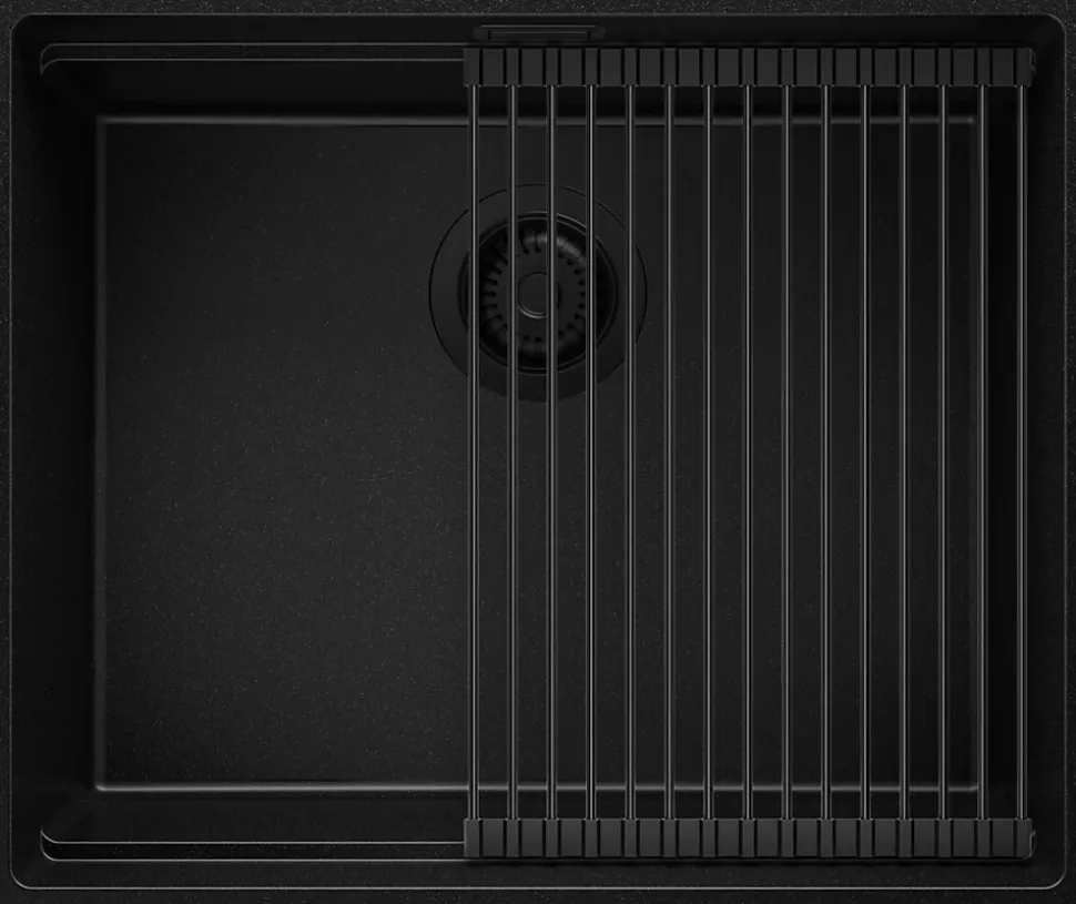 PRIMAGRAN Evier Sous Plan Tout Noir 56x47cm, Evier en Granit 1 bac + Kit de Vidage + Accessoires, Évier au meuble 60cm – Prague