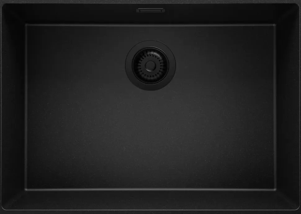 PRIMAGRAN Evier Sous Plan Tout Noir 66x47cm, Evier en Granit 1 bac + Kit de Vidage, Évier au meuble 70cm – London