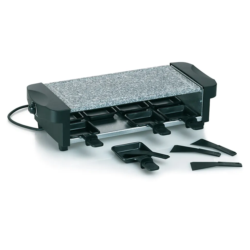 Découvrez la raclette avec plaque en granit pour 4 personnes, l’ultime appareil de cuisine pour des soirées conviviales et gourmandes entre amis ou en famille.Cette raclette est conçue pour accueillir jusqu’à 4 personnes, offrant ainsi une expérience de partage. Avec sa plaque en granit naturel, elle permet une cuisson saine et savoureuse de vos aliments préférés.La plaque en granit offre une répartition homogène de la chaleur, garantissant une cuisson uniforme de vos fromages, légumes et viandes. Elle conserve également la chaleur plus longtemps, vous permettant de savourer vos aliments à la température idéale.L’appareil de raclette est doté de poêlons antiadhésifs qui permettent de faire fondre votre fromage préféré, tandis que la plaque en granit s’occupe de griller et de cuire les accompagnements. De plus, elle est dotée d’un thermostat réglable, vous permettant de contrôler la température de cuisson selon vos préférences.Profitez d’une variété infinie de combinaisons et de recettes pour satisfaire tous les palais. Matière : Pierre Couleur : Noir Longueur : 50 cm Largeur : 10.5 cm Hauteur : 10 cm Compatible Lave-vaisselle