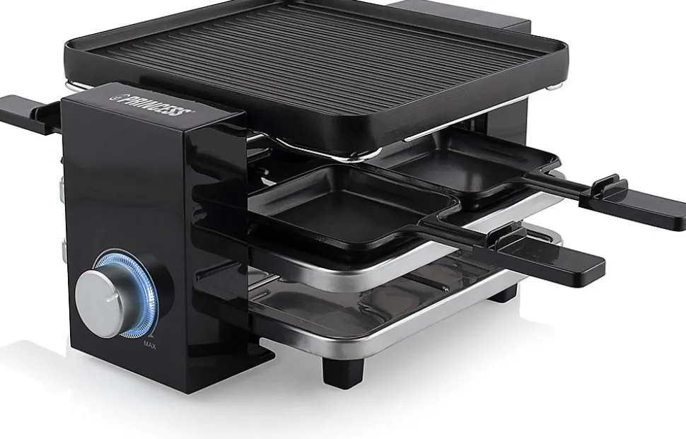 La raclette Princess Piano 4 est idéale pour des soirées conviviales en famille ou entre amis, pouvant réunir jusqu’à 4 personnes. Elle dispose d’une plaque de cuisson réversible et amovible de 21 x 23 cm, avec un côté rainuré pour griller viande, fruits de mer et légumes, et un côté lisse pour cuire œufs, bacon ou préparer des plats façon « Teppanyaki ». Les poêlons antiadhésifs en fonte d’aluminium et la plaque passent au lave-vaisselle pour un nettoyage facile. Le thermostat réglable jusqu’à 230 °C permet une cuisson parfaite, tandis que les pieds antidérapants et la protection contre la surchauffe assurent une utilisation sûre. 4 spatules en bois sont incluses pour servir vos préparations sans rayer les surfaces.