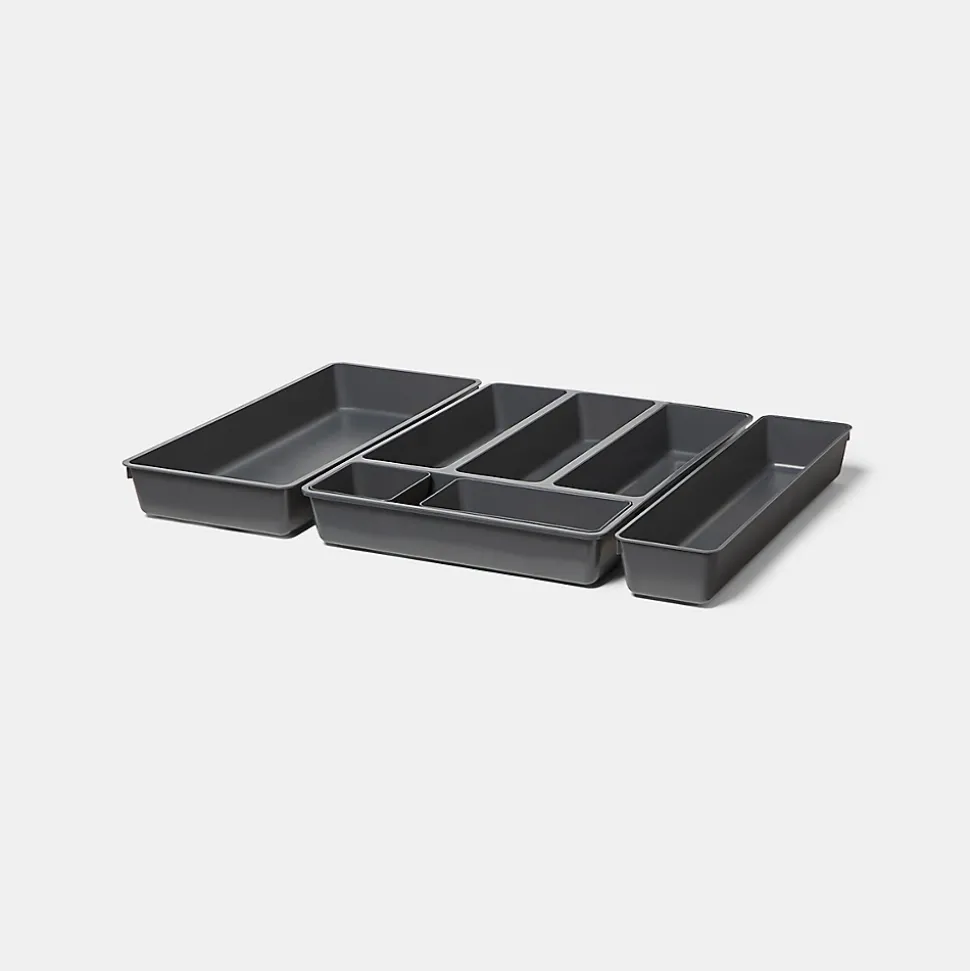 - Intervertissez les compartiments pour accueillir différentes tailles de couverts et ustensiles