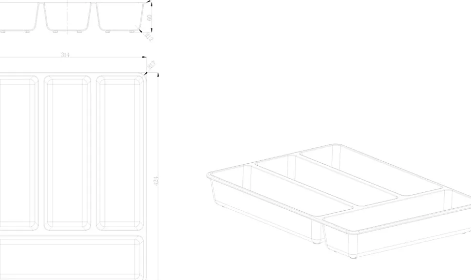 Range couverts GoodHome Nitaki gris 32 x 42 cm, 4 compartiments