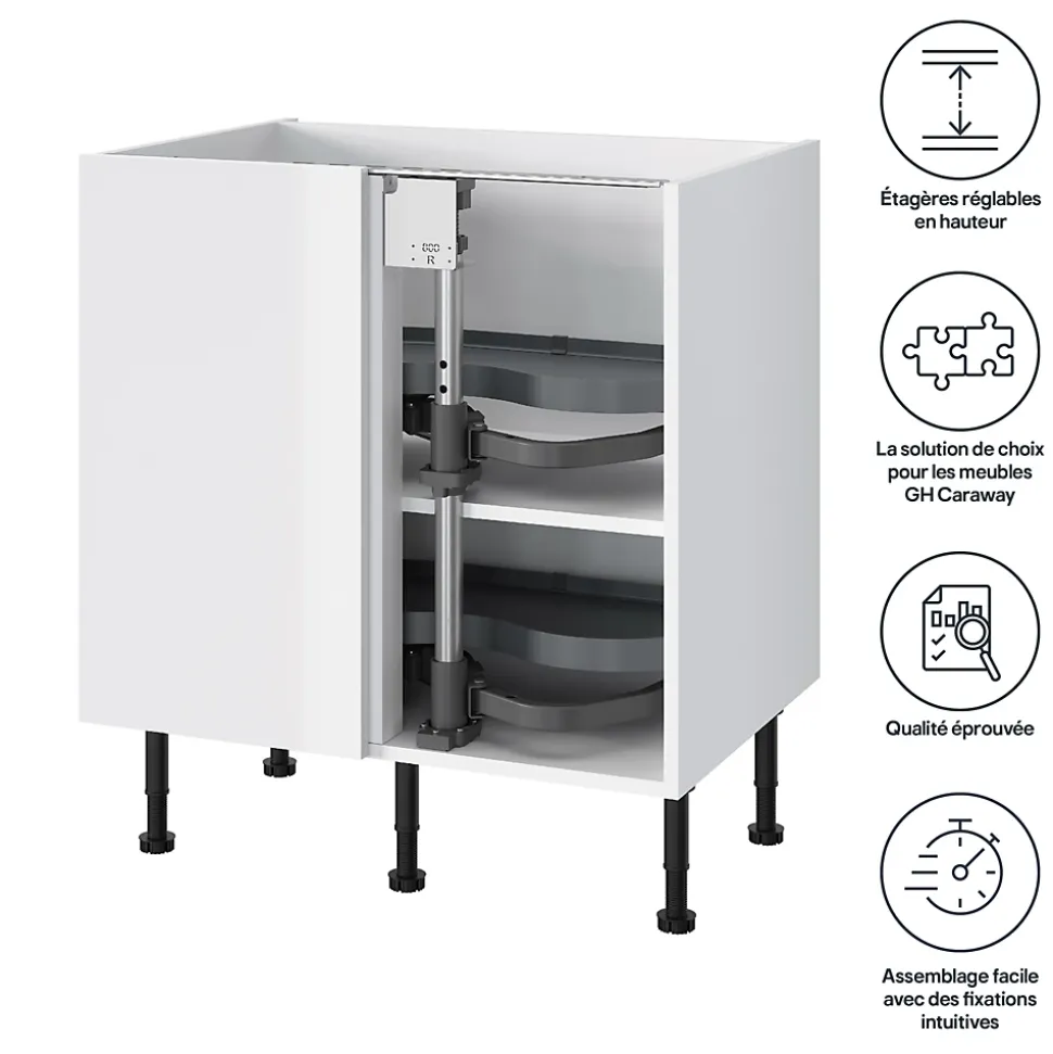 Rangement coulissant d’angle pour meuble de cuisine GoodHome Pebre 80 cm, gauche