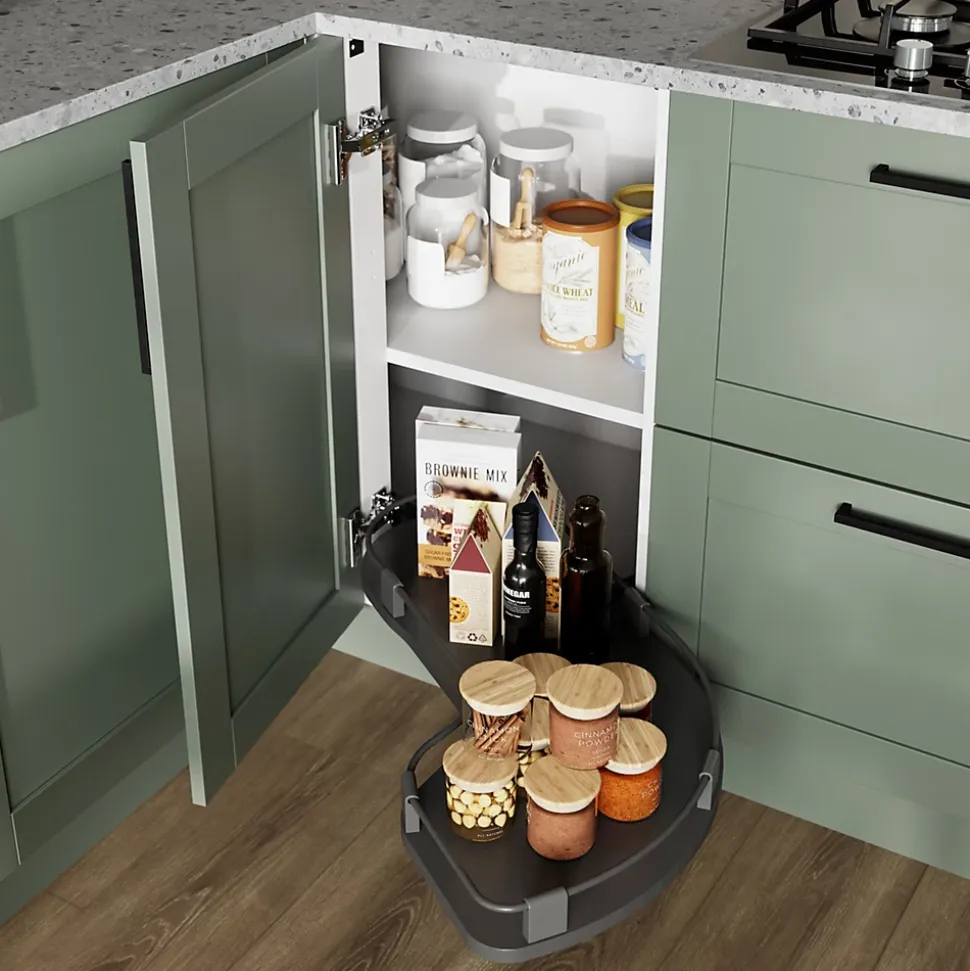 - Conçu pour optimiser les espaces de rangement dans les angles de la cuisine, il permet d’accéder aux zones les plus difficiles