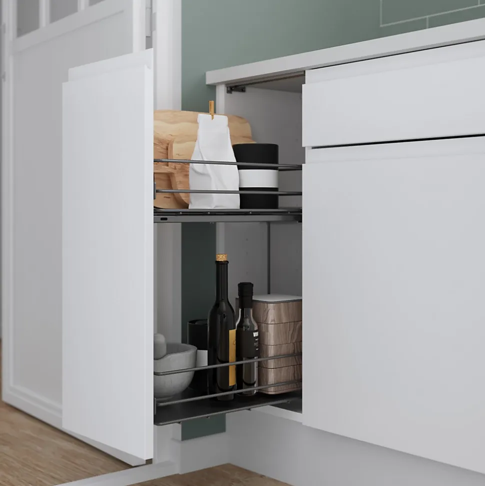 Notre gamme de rangements coulissants Pebre, facile à installer, est l’assistant idéal. Ces rangements vous évitent d’avoir à atteindre le fond du placard, afin que vous puissiez trouver tout ce dont vous avez besoin facilement.