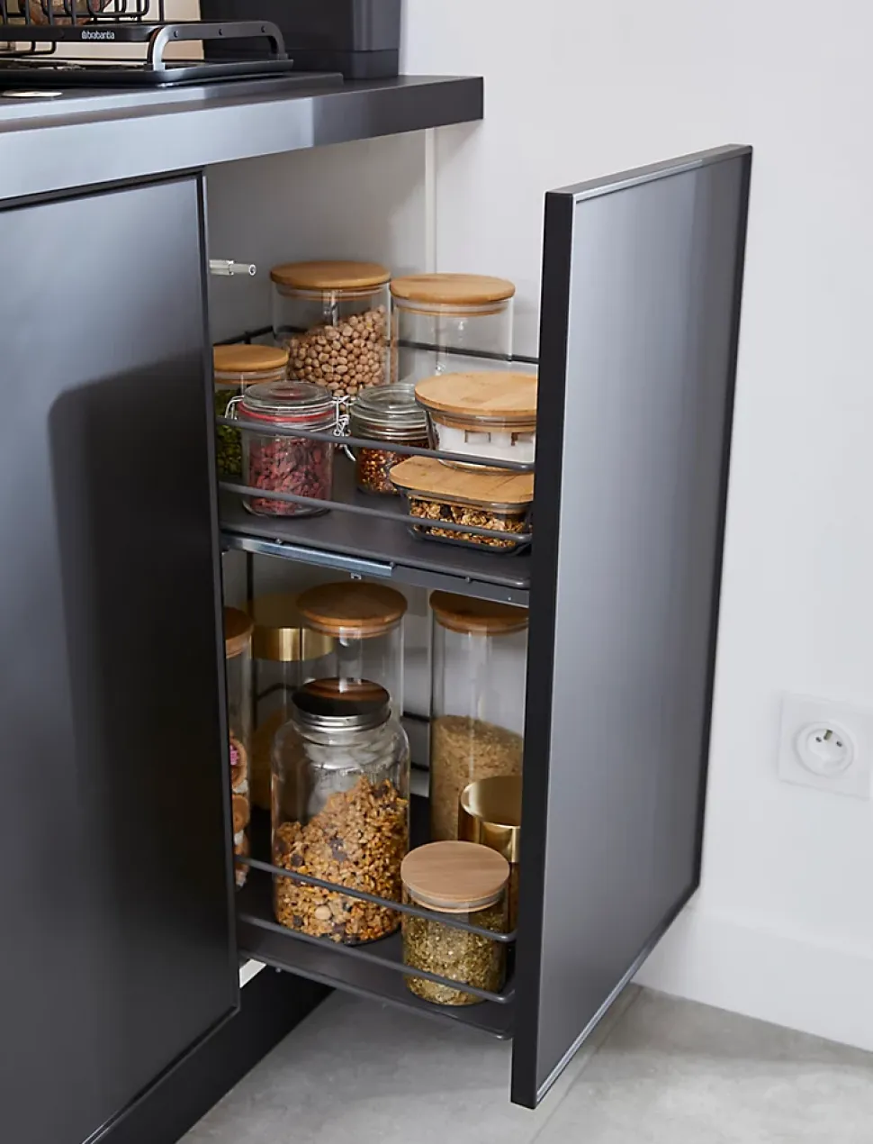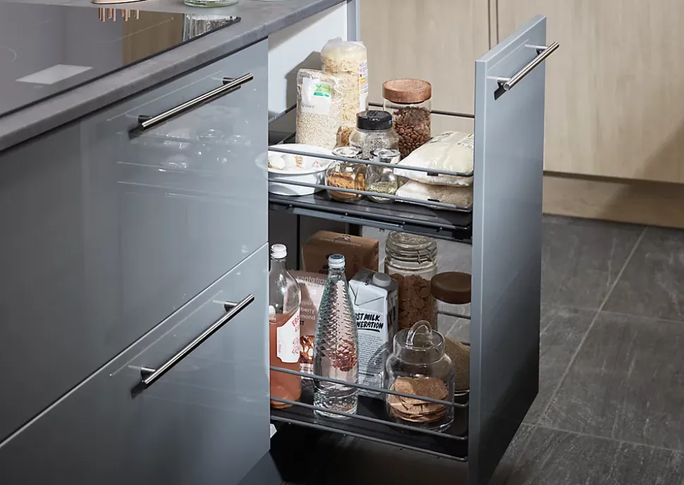 Notre gamme de rangements coulissants Pebre, facile à installer, est l’assistant idéal. Ces rangements vous évitent d’avoir à atteindre le fond du placard, afin que vous puissiez trouver tout ce dont vous avez besoin facilement.