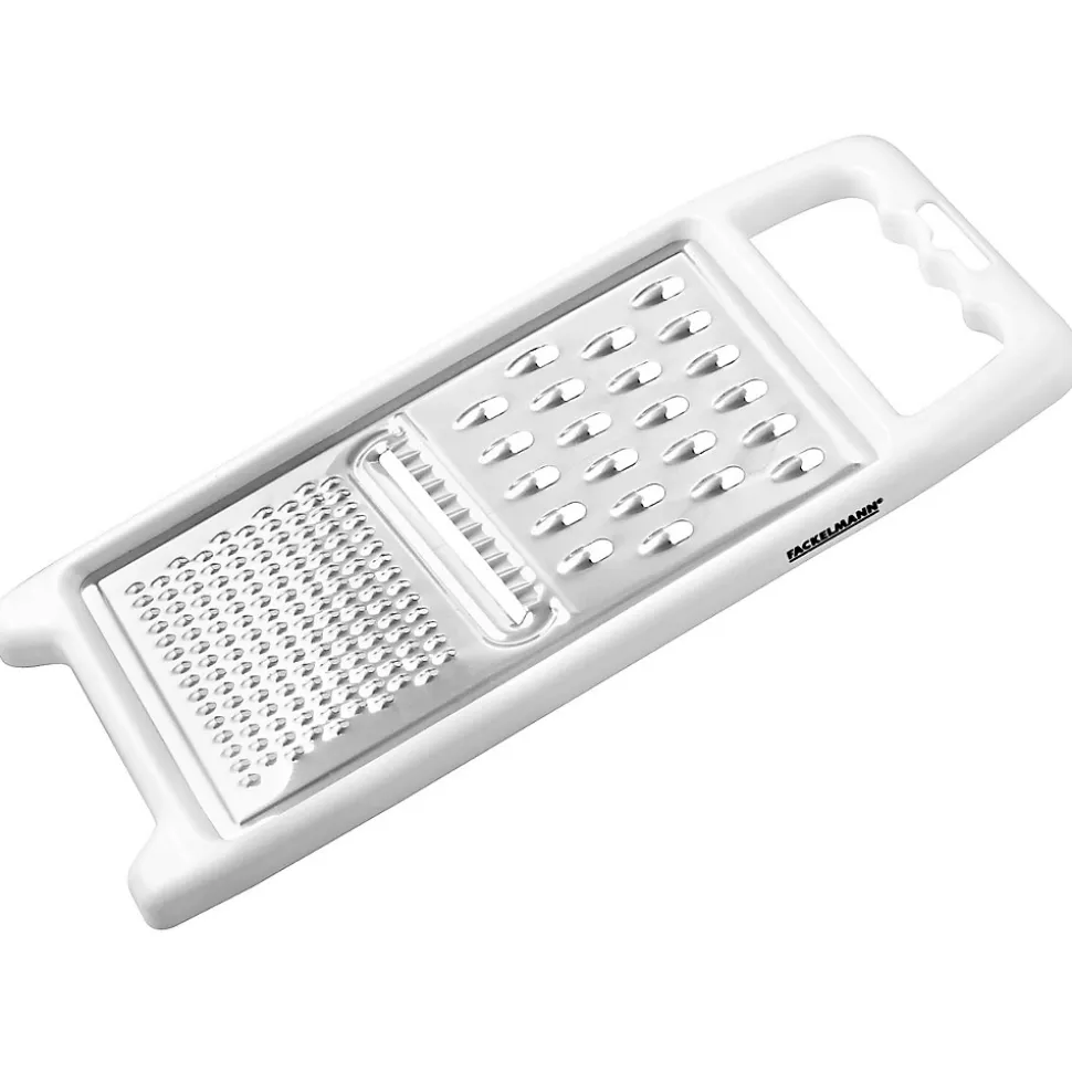 - DESCRIPTION : Fackelmann vous propose cette râpe rectangulaire. Elle comporte une partie découpe en petits ronds, une autre en gros ronds et la partie centrale permet de couper en tranches les aliments. La poignée sur le dessus confère un maintien optimal de la râpe.