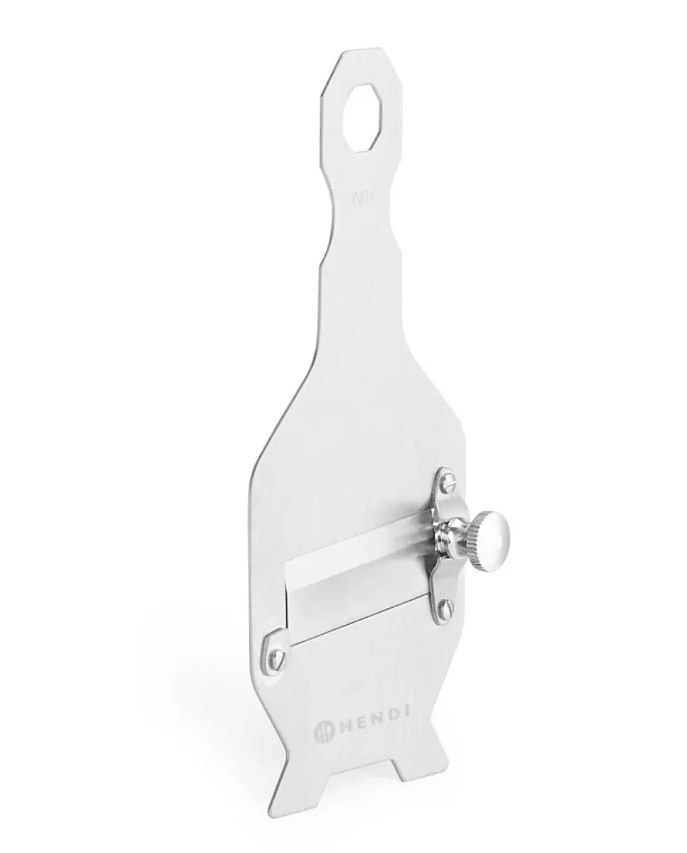 Rasoir à truffes 220x85mm Le rasoir à truffes Hendi est conçu pour couper des tranches parfaitement fines de truffes ou d’autres champignons. grâce à sa lame réglable, il peut également être utilisé pour trancher et Râper des légumes, du fromage et du chocolat.L’outil parfait pour découper de fines tranches de truffes.Lame en acier inoxydable (AISI 420) – dureté 55HRC.Logement de la lame en acier inoxydable (AISI 430).Réglage de la lame par vis.Epaisseur de la tranche : de 0,2 à 3 mm.Lame en acier inoxydable (AISI 420) – dureté 55HRC.Epaisseur de la tranche réglable de 0,2 à 3 mm avec un vis.Parfait pour des tranches de truffes fines et régulières.Léger mais durable..