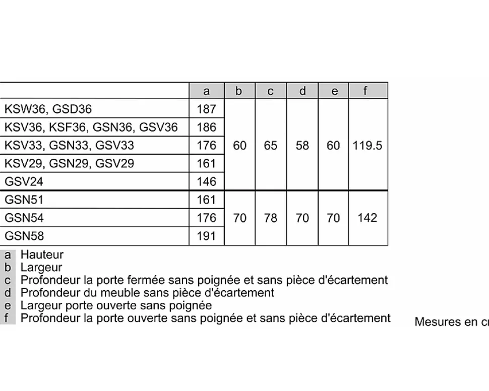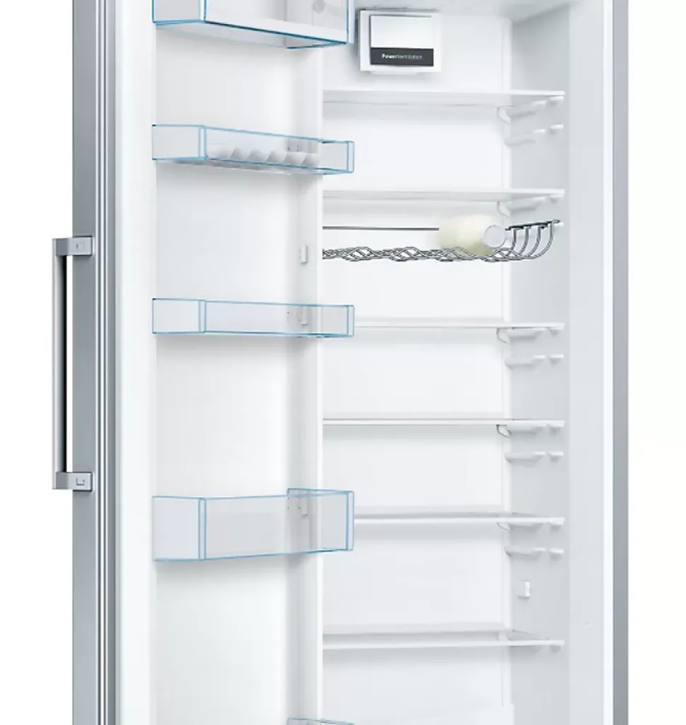 Réfrigérateur 1 porte 60cm 324l Bosch – Réfrigérateur monoporte Série 4 Bosch KSV33VLEP.Eclairage LED SoftStart à intensité progressive :Les lampes LED à intensité progressive, positionnées à l’avant du plafond ou intégrées dans les parois latérales, assurent un éclairage parfait de l’ensemble du compartiment. Peu consommatrices d’énergie, elles durent très longtemps et ne chauffent pas.Clayettes EasyAccess : un stockage en toute simplicité et une visibilité parfaite.Les clayettes en verre incassable sans cadre sont particulièrement simples à utiliser, grâce à leur système coulissant. elles peuvent être extraites vers l’extérieur de 16 cm. Ainsi, elles vous donnent une parfaite visibilité de votre nourriture à tout moment et facilitent le chargement et le déchargement des aliments.Super réfrigération :Refroidit les nouveaux aliments plus rapidement, tout en protégeant les aliments déjà à l’intérieur du réfrigérateur.FreshSense : conservation idéale des aliments :Grâce à des capteurs externes et internes au réfrigérateur, la température reste constante dans l’appareil malgré les variations de température. Ce système garantit des conditions de conservation idéales pour les aliments et un fonctionnement optimisé.Technologie Intelligent Inverter : une interaction efficace.La technologie « Intelligent Inverter » consiste en l’interaction intelligente des capteurs de température, du système électronique et du compresseur. Les capteurs contrôlent en permanence la température à l’intérieur et à l’extérieur du réfrigérateur. Les variations sont ensuite immédiatement transmises au système électronique afin que le compresseur adapte sa puissance à la situation. – Type de produit : Réfrigérateur.Volume total : 324 l.Classe d’efficacité énergétique Classe énergie : E.Consommation énergétique : 113 kWh/an.Niveau sonore : 39 DB.Classe d’efficacité sonore : Classe sonore_Eu19: C.Réfrigération dynamique par ventilateur.Rack à bouteilles