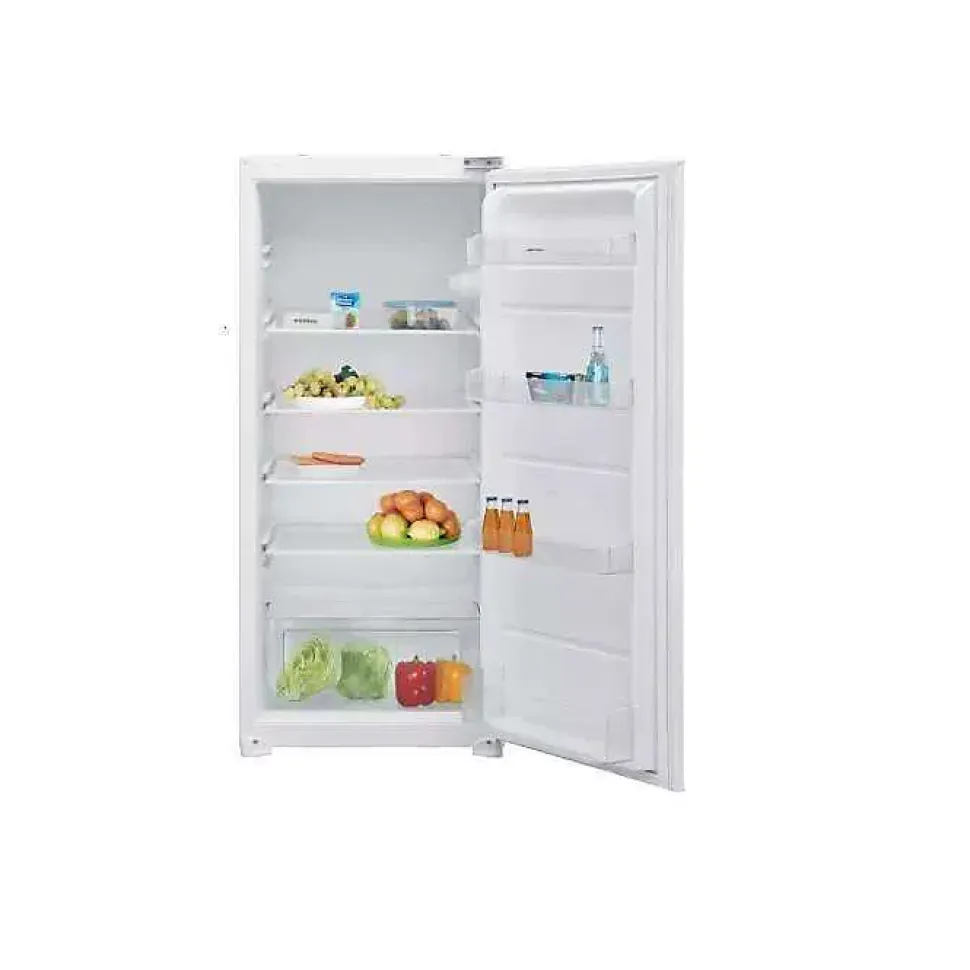 Réfrigérateur 1 porte intégrable à glissière 193l Airlux – Réfrigérateur 1 porte ARI200TU de la marque Airlux. Possédant un espace de stockage généreux, ce modèle toututile vous offre un espace modulable à votre convenance. Sa taille compacte le rend idéal pour les petites cuisines et les espaces restreints, vous permettant de conserver vos aliments frais de manière optimale.Ce réfrigérateur encastrable, d’une hauteur 122 cm, s’intégrera harmonieusement dans tout les types de cuisines, même les plus petites grâce à sa taille compacte.Vérifiez le contenu de votre réfrigérateur grâce à la technologie LED. Ce système d’éclairage économe en énergie vous offrira une excellente visibilité et un meilleur confort. – Type de produit : Réfrigérateur.Type de construction : Intégrable.Volume utile total : 193 L.Classe d’efficacité énergétique : E.Emissions de bruit acoustique dans l’air (dB(A)) : B.Niveau sonore : 35 dB(A).Consommation annuelle d’énergie : 100 kWh.Consommation d’énergie journalière (24h) : 0,27 kWh.Puissance électrique d’installation : 60 W.Classe climatique : N. Cet appareil est conçu pour être utilisé à une température ambiante comprise entre 16°C et 32°C.Eclairage intérieur : LED.Type de porte : Charnières à droite.Portes réversibles : Oui.Système de porte : Glissières.Compresseur : 1.Thermostat électronqiue : Oui.Réfrigérant R600A : 0,061 kg.Mode de dégivrage réfrigérateur : Automatique.Position du congélateur : Pas de congélateur.Type de froid du réfrigérateur : Statique.Réfrigérateur connecté : Non.Intensité : 0,26 A.Tension : 220 / 240 V.Fréquence : 50 Hz.Nombre porte : 1.Nombre de clayettes : 5.Type de clayette : Verre de sécurité.Bac à légumes : 1.Réglage hiver : Non.Balconnets : 4 dont un porte bouteilles et un 1 support à œufs.Cordon d’alimentation : 190 cm, avec prise.Couleur :