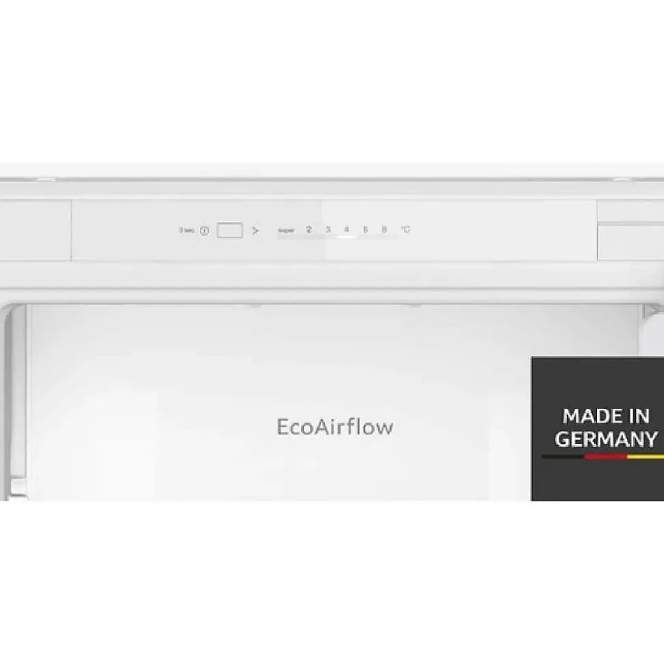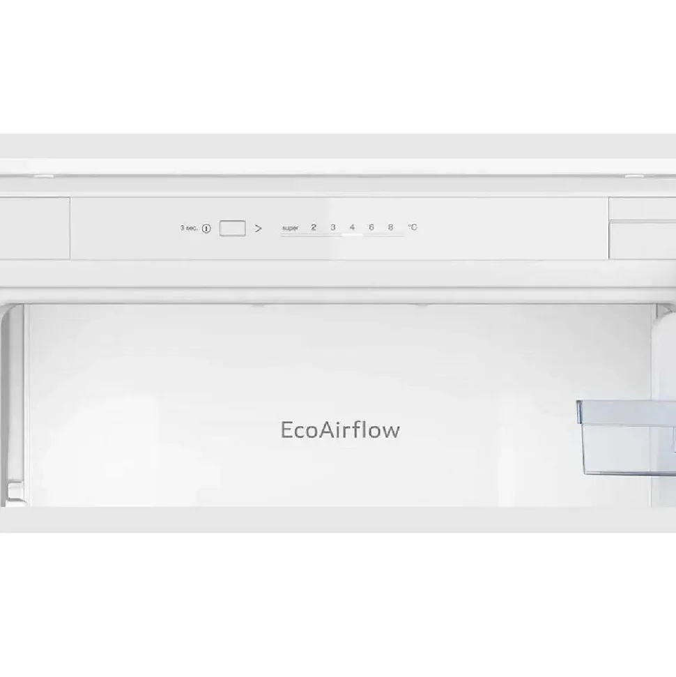 Réfrigérateur 1 porte intégrable à glissière 204l Neff – Réfrigérateur 1 porte intégrable Tout utile N30 Neff KI1411SE0 Doté d’une lumière LED éclatante et d’AutoAirflow pour des conditions optimales de conservation des aliments. Fonction Super réfrigératon avec arrêt automatique. EcoAirflow : une ventilation optimale et une température constante dans toute la zone froide. Commandes électroniques sur le top avec indicateur LED. FreshSense : les capteurs internes et externes garantissent une température constante dans l’appareil malgré les variations de température. – Type de produit : Réfrigérateur 1 porte intégrable.Volume (total) : 204 L.Volume (réf.) : 204 L.Type de froid : statique.Nombre de compresseurs : 1.Nombre de circuits : 1.Régulation : électronique.Affichage T° : oui.Niveau sonore : 35 dB.Conso élec. : 101 kWh / an.Classe climatique : SN-ST.Label énergie : E.Catégorie sonore : B.Dégivrage automatique.5 clayettes verre dont 4 réglables en hauteur.Tiroir à légumes FreshSafe.Eclairage LED.Alarme porte ouverte.Livré avec casiers à oeufs.Type de fixation : à glissières.Hauteur de niche : 122,5 cm.Dimensions Hors tout (LxHxP) : 54,1 x 122,1 x 54,8 cm.Dimensions Niche (LxHxP) : 56 x 122,5 x 55 cm.Porte(s) réversible(s) : oui.Poids net : 42,7 Kg.