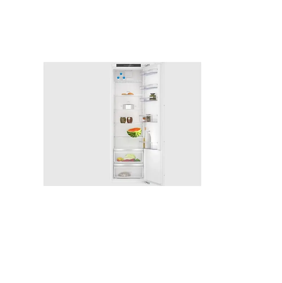 Réfrigérateur 1 porte intégrable à pantographe 310l blanc Neff – Réfrigérateur 1 porte intégrable à pantographe KI1812FE0 de Neff. Il y a un balconnets de porte ultra stables : plus hauts et plus flexibles pour plus de stabilité et d’espace. Éclairage LED : découvrez l’intérieur de votre réfrigérateur sous un nouveau jour, avec l’éclairage LED économe en énergie. Fonction Super réfrigération : abaisse brièvement la température du réfrigérateur pour vite refroidir les nouvelles denrées à conserver et préserver les autres. Support à oeufs : ouvrez la porte sans risque de cassez vos oeufs. Fresh Sense : la température est sous contrôle. 2 MultiBox XXL : compartiments transparents avec fond ondulé, idéal pour le stockage des fruits et légumes. – Type de produit : Réfrigérateur une porte.Type de construction : Encastrable.Froid brassé PowerVentilation.Fonction Super Réfrigération avec arrêt automatique.Éclairage LED : Oui.Volume total du produit (UE 2017/1369) : 310 litres.Classe d’efficacité énergétique : E.Classe d’efficacité sonore : b.Consommation d’énergie moyenne en kilowattheures par an (kWh/a) (UE 2017/1369) : 114 kWh/an.Coffre-fort frais 2 : Non.Valeur de bruit : 35 dB(A) pour 1 pW.Appareils électroménagers en réseau avec Home Connect12 : Non.Butée de porte : Modifiable à droite.Cadre/assiette décoratif : Pas possible.Poignée de porte : Pas de poignée.Contrôles : Super interrupteur de refroidissement, affichage de la température pour le refroidissement, signal d’avertissement d’ouverture de porte.Classe climatique (UE 2017/1369) : Plage de températures tempérées étendue, plage de températures tempérées, subtropicale.Accessoires intégrés : 3 x plateau à œufs, 1 x ensemble robuste.Coffre-fort frais 1 : Non.Coffre-fort frais 2 : Non.Coffre-fort frais 3 : Non.Excellent refroidissement : Oui.Zone Vario : Non.Étagères faciles d’accès : Non.Mode
