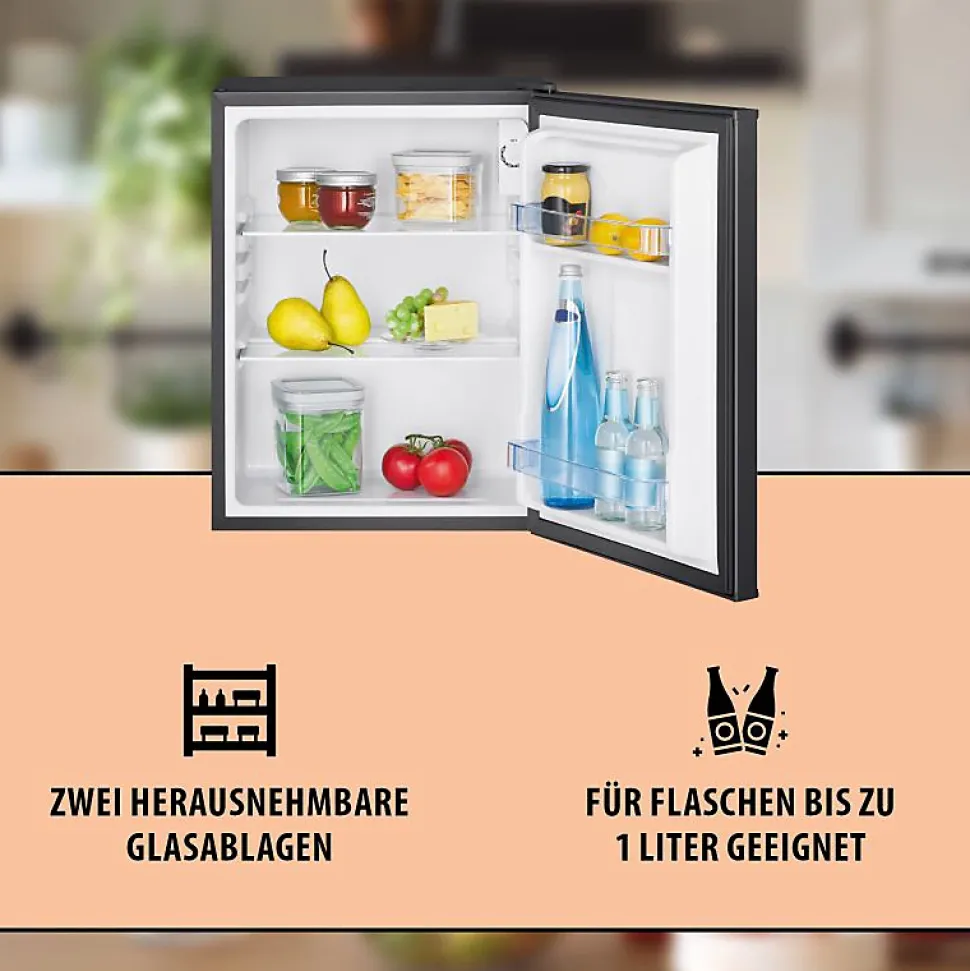 Un aménagement sur mesure pour vos besoins : grâce à ses deux étagères en verre amovibles et sa porte réversible, ce réfrigérateur s’adapte à vos envies. Sa plage de température précise et son design épuré en font un allié de choix pour une conservation efficace et accessible.CaractéristiquesCapacité nette : 58 litresRéglage progressif de la températurePlage de température : 0°C ~ +8°C2 étagères en verre, amovibles2 compartiments de porteArrêt de porte à droite, réversiblePieds réglablesDonnées techniquesTension d’alimentation : 220-240 V~ / 50 HzPuissance nominale : 60 WClasse climatique : N/ST (+16°C ~ +38°C)Liquide de refroidissement : R600aNiveau sonore : 39 dBDonnées de consommationConsommation d’énergie / 24 h : 0,222 kWhConsommation d’énergie / année : 81 kWh(conformément à la réglementation européenne sur les fiches de données 2019/2016)Données logistiquesDimensions de l’appareil : 63,2 x 47,0 x 45,0 cm (HxLxP)Emballage : 64,5 x 52,0 x 46,5 cm (HxLxP)Poids net : 16,5 kgPoids brut : 18,0 kg