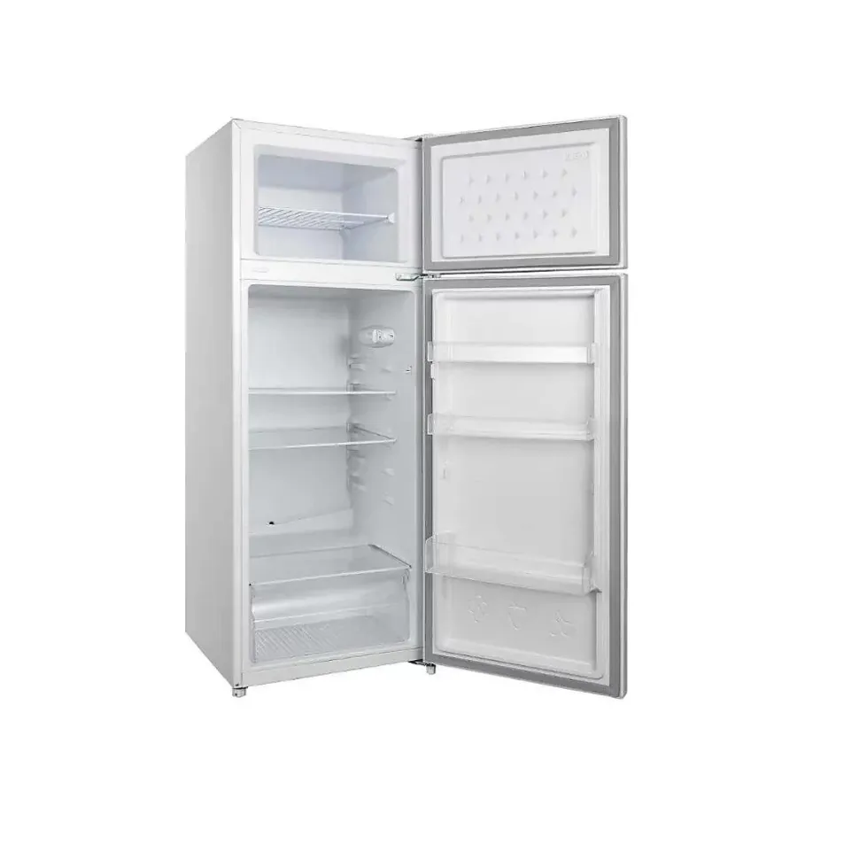 Réfrigérateur combiné 54cm 211l blanc Fagor – Réfrigérateur combiné de Fagor FF7212W. – Type de Produit : Réfrigérateur 2 portes.Type : Réfrigérateur – Congélateur en haut.Autonomie (h) : 13.Nbre de porte(s) : 2.Régulation de la température : Mécanique.Réfrigérateur connecté : Non.Type de construction : Pose libre.Volume total (L) : 211.Classe d’efficacité énergétique : E.Emissions de bruit acoustique dans l’air (dB(A)) : 41.Classe d’émission de bruit acoustique dans l’air : C.Conso. d’énergie annuelle (kWh/an) : 176.Classe climatique : ST. Cet appareil est conçu pour être utilisé à une température ambiante comprise entre 16°C et 38°C.Réglage hiver : Non.Volume compartiment réfrigérateur (L) : 170.T°C recommandée pour stockage optimisé des denrées alimentaires fraîches (°C) : 4.Mode de dégivrage réfrigérateur : Automatique.Volume compartiment congélateur (L) : 41.T°C recommandée pour stockage optimisé des denrées alimentaires dans compartiment 4 étoiles (°C) : -18.Mode de dégivrage congélateur : Manuel.Pouvoir de congélation spécifique (kg/24h) : 2.Dispositif de congélation rapide : Non.Type de source lumineuse : LED.Classe d’efficacité énergétique de la source lumineuse : G.Type de dégivrage : Automatique.Type de froid du réfrigérateur : Statique.Type de clayette(s) : Verre.Nbre total de clayette(s) : 2.Nbre de balconnets contre-porte : 3.Type d’éclairage : LED.Position du congélateur : Haut.Dégivrage congélateur : Manuel.Type de froid du congélateur : Statique.Eclairage intérieur : Non.Porte réversible : Oui.Type de poignée(s) : Intégrée.Distributeur d’eau : Non.Equipement réfrigérateur : Bac à légumes, Support à œufs.Equipement congélateur : Clayette verre, Bac à glaçons.Ecran : Non.Couleur : Blanc.Hauteur (cm) : 144.Largeur (cm) : 54.Profondeur