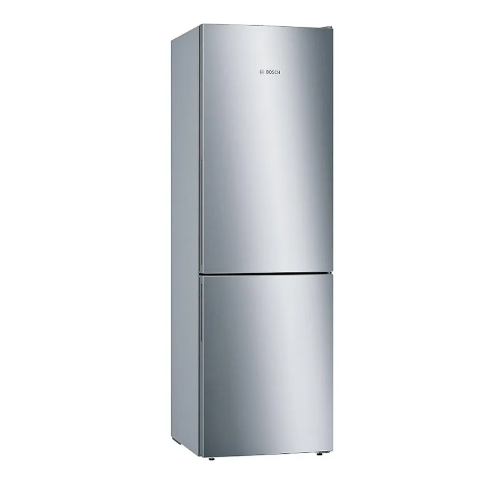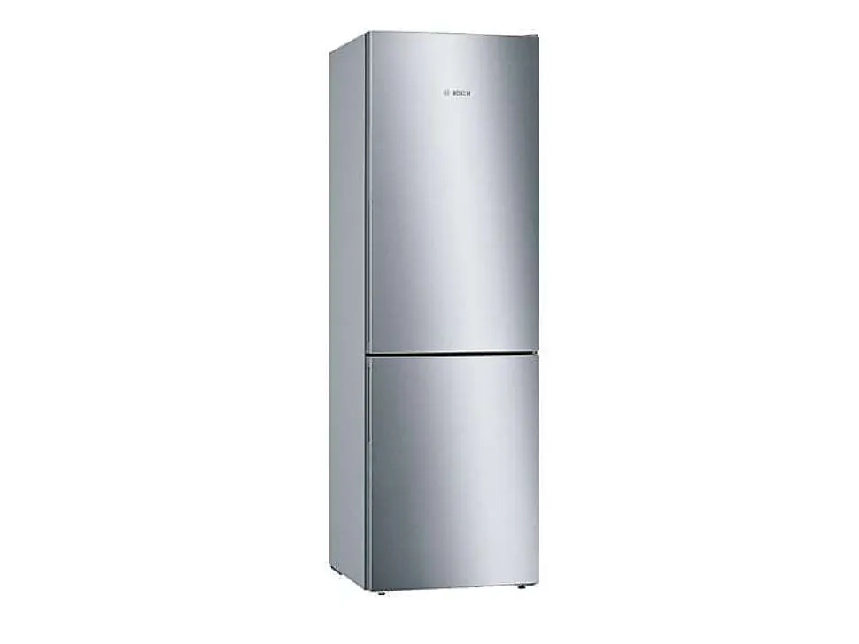 Réfrigérateur combiné 60cm 308l metal look Bosch – Le réfrigérateur combiné série 6 de Bosch KGE36ALCA avec VitaFresh 0°C : particulièrement efficace conserve votre viande et poisson frais jusqu’à deux fois plus longtemps.VitaFresh : conserve le croquant des aliments frais plus longtemps : grâce à des températures très basses pour la viande et le poisson et un taux d’humidité ajustable pour les fruits et légumes.Éclairage LED : pour une visibilité parfaite sur vos produits frais.BigBox : compartiment pour les grands produits surgelésClayette EasyAccess : grâce à cette clayette coulissante en verre, le contenu de votre réfrigérateur est beaucoup plus accessible.Low Frost : décongeler moins souvent grâce à la faible quantité de formation de glace pour un gain de temps et des économies en énergie. – Type de produit : Réfrigérateur.Gamme : Série 6.Type d’installation : Pose-libre.Classe d’efficacité énergétique : C.Consommation énergétique annuelle moyenne : 149 kWh / an.Volume total: 308 l.Volume utile partie congélation : 94 l.Volume utile partie réfrigération : 214 l.Volume net zone proche de 0°C: 22 litres.Niveau sonore : 38 dB(A) re 1pW.Classe de niveau sonore : C.Porte habillable : Pas possible.Puissance de raccordement : 90 W.Charnière de la porte : Droite réversible.Longueur du cordon électrique : 240.0 cm.Nombre de compresseurs : 1.Nombre de circuit de froid : 2.Y a-t-il un ventilateur dans le compartiment réfrigérateur : Oui.Porte réversible : Oui.Nombre de clayettes dans le réfrigérateur : 2.Clayettes spéciales bouteille : Oui.Froid ventilé : Non.Bottom-Freezer.LowFrost dégivrage rapide et moins fréquent.Portes InoxLook, parois Pearl Grey.Poignée verticale intégrée.Réglage électronique de la température, affichage précis.Système d’alarme optique et acoustique en cas d’augmentation de la