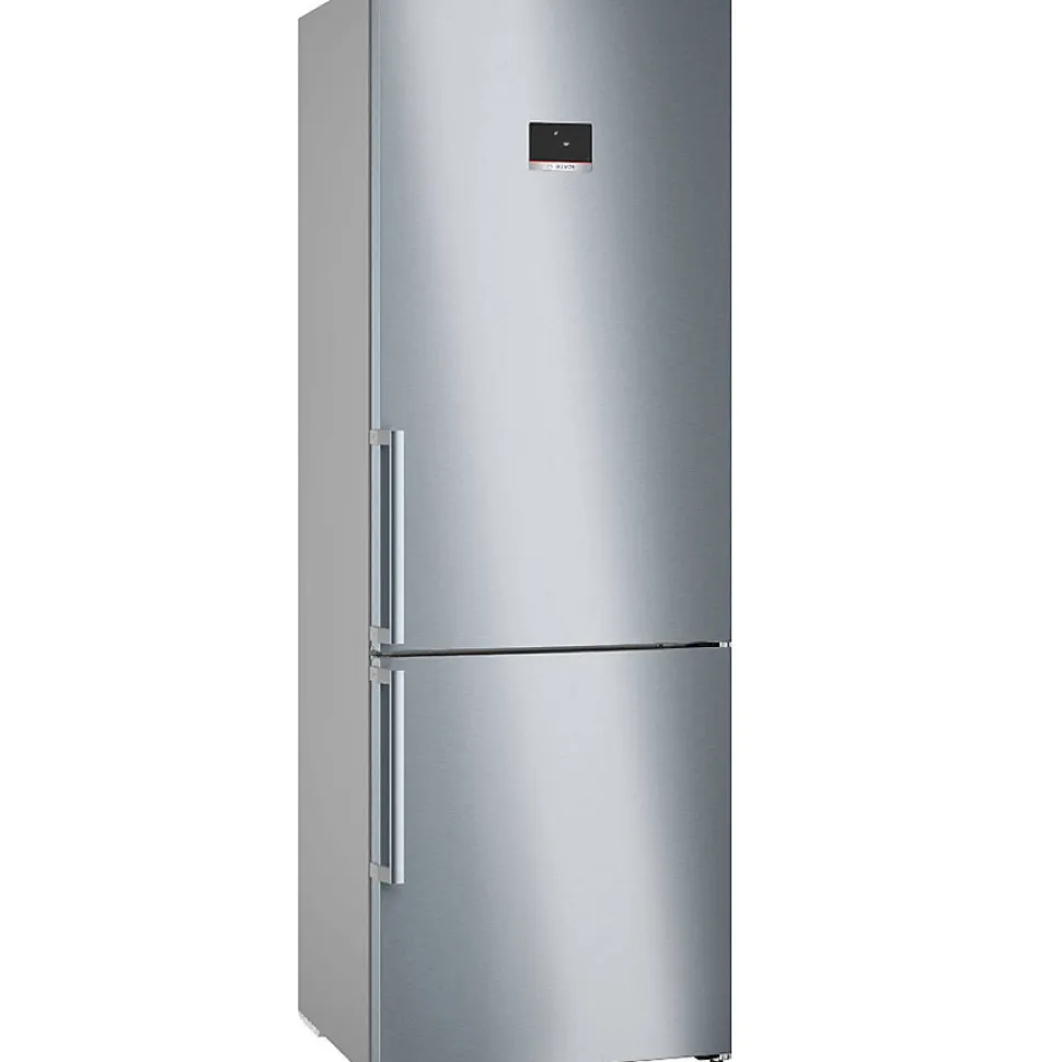 Réfrigérateur combiné 70cm 440l nofrost Bosch – Réfrigérateur combiné Série 6 Bosch KGN49AIBT. Le combiné No Frost avec VitaFresh et une capacité XXL : Conserve plus longtemps la fraîcheur de vos aliments frais. VitaFresh XXL : des tiroirs extra-larges offrant les conditions idéales pour conserver vos aliments plus longtemps. NoFrost : le dégivrage du réfrigérateur et du congélateur, c’est terminé. Paroi arrière en métal avec Multi Airflow : fait circuler uniformément de l’air frais pour maintenir des températures constantes. Eclairage LED : éclairage uniforme de votre réfrigérateur, sans éblouissement. Perfect Fit : installer votre réfrigérateur directement collé à un mur ou un autre appareil n’est plus un problème. – Type de produit : Réfrigérateur combiné.Type de pose : Pose libre.Volume utile total (en litres) : 440.Capacité congélateur (en L) : 129.Capacité réfrigérateur (en L) : 311.Type de froid réfrigérateur : Ventilé.Type de froid congélateur : No Frost.Dégivrage du réfrigérateur : Dégivrage automatique.Dégivrage du congélateur : Dégivrage automatique.Technologie de froid (dénomination commerciale) : No frost.Classe énergétique (2021) : B.Consommation énergie annuel (kWh/an) (2021) : 142.Classe climatique : SN-T.Autonomie en cas de coupure (en h) : 21.Pouvoir de congélation (kg/24h) : 11.5.Perception sonore (en dB) (2021) : 35.Classe de perception sonore (2021) : B.Type de Clayette : Verre de sécurité.Nombre de clayettes : 5.Clayette porte bouteille : Oui.Eclairage LED : Oui.Nombre de circuits : 2.Distributeur d’eau fraîche : Non.Fabrique de glaçons : Non, bac à glaçons manuel.Bac avec régulateur d’humidité : Oui.Portes réversibles : Oui.Famille de Couleur : Inox.Gamme : Série 6.Réfrigérateur connecté : Non.Dimensions du produit (H x L x P en cm) : 203 / 70 / 66.7.Poids net (en Kg) : 110.7.