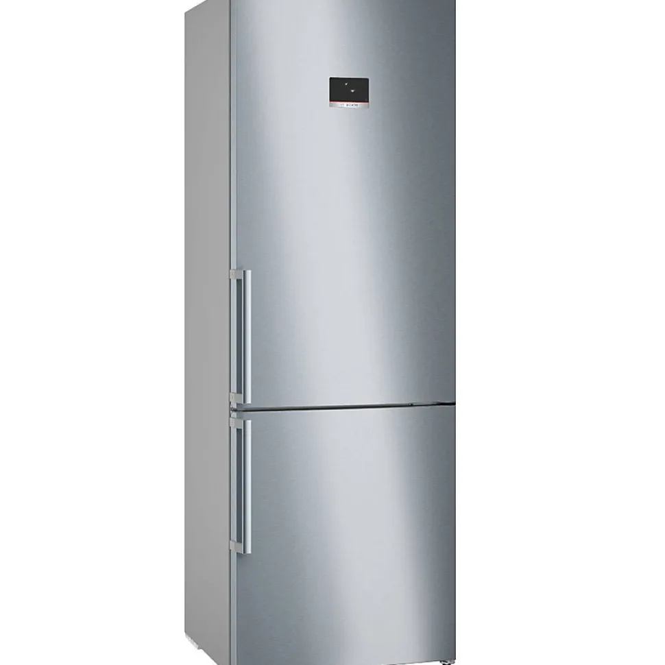Réfrigérateur combiné 70cm 440l nofrost inox Bosch – Le réfrigérateur combiné Série 4 Bosch KGN497ICT No Frost avec VitaFresh et une capacité XXL : Conserve plus longtemps la fraîcheur de vos aliments frais. VitaFresh XXL : des tiroirs extra-larges offrant les conditions idéales pour conserver vos aliments plus longtemps. NoFrost : le dégivrage du réfrigérateur et du congélateur, c’est terminé. Paroi arrière luisante avec MultiAirflow : fait circuler uniformément de l’air frais pour maintenir des températures constantes. PerfectFit : installer votre réfrigérateur directement collé à un mur ou un autre appareil n’est plus un problème. Super-congélation automatique : l’appareil détecte automatiquement l’augmentation de température lorsque vous introduisez de nouveaux aliments à l’intérieur. – Type de produit : Réfrigérateur combiné.Type de pose : Pose libre.Volume utile total (en litres) : 440.Capacité congélateur (en L) : 129.Capacité réfrigérateur (en L) : 311.Type de froid réfrigérateur : Super réfrigération.Type de froid congélateur : No Frost.Dégivrage du réfrigérateur : Dégivrage automatique.Dégivrage du congélateur : Dégivrage automatique.Technologie de froid (dénomination commerciale) : Froid ventilé.Classe énergétique (2021) : C.Consommation énergie annuel (kWh/an) (2021) : 178.Classe climatique : SN-T.Autonomie en cas de coupure (en h) : 18.Pouvoir de congélation (kg/24h) : 11.Perception sonore (en dB) (2021) : 35.Classe de perception sonore (2021) : B.Type de Clayette : Verre.Nombre de clayettes : 5.Eclairage LED : Oui.Distributeur d’eau fraîche : Non.Fabrique de glaçons : Non, bac à glaçons manuel.Raccordement alimentation d’eau : Pas d’arrivée d’eau.Bac avec régulateur d’humidité : Oui.Portes réversibles : Oui.Famille de Couleur : Inox.Gamme : Série 4.Réfrigérateur connecté : Non.Dimensions du produit (H x L x P