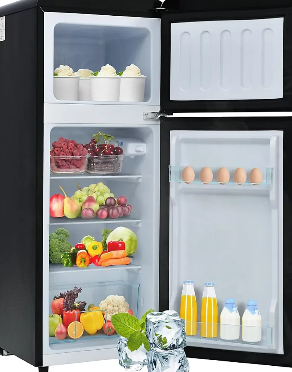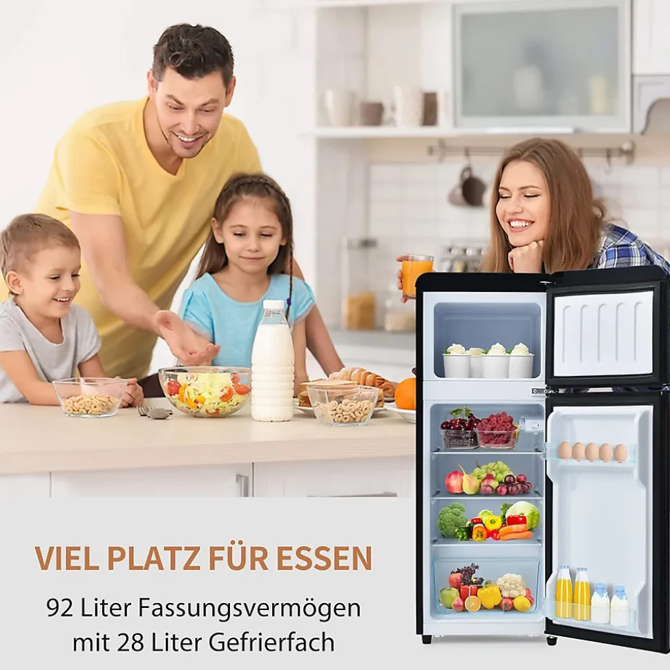 &Description&【Design à deux portes】Sa pose libre et son format peu encombrant le rendent parfait pour le salon, la cuisine, le bureau ou près du canapé. Il offre une capacité totale de 92 litres et dispose d’un éclairage LED pour une visibilité claire.【Haute efficacité énergétique】Classé en classe énergétique D, ce réfrigérateur assure une consommation réduite de 116 kWh/an. Il est équipé d’un compartiment congélateur 4 étoiles, fonctionne à seulement 45 dB et utilise le réfrigérant R600a avec un compresseur performant pour un refroidissement fiable.【Agencement intérieur flexible】Le compartiment réfrigérateur inférieur propose 64 litres de capacité. Les clayettes réglables permettent une organisation personnalisée, et la porte intègre un porte-œufs à deux niveaux pour plus de praticité.【Deux compartiments séparés】Les zones réfrigérateur et congélateur indépendantes évitent le mélange des odeurs et facilitent la conservation hygiénique des aliments, tout en simplifiant le rangement et le nettoyage.【Sept réglages de température】Conçu comme réfrigérateur d’appoint polyvalent, il propose sept niveaux de température pour s’adapter à toutes les saisons et à tous les aliments. &Détails du produit&● Dimensions du produit (L x l x h) : 41 x 45,5 x 105.5 cm● Matériau principal : Plastique● Couleur : Noir ● Capacité : 92 Litres● Consommation électrique annuelle : 116 kWh/an● Volume du congélateur : 28 Litres● Congélateur : 64 litres● Plage de réglage de la température : -27° ∽ 13● Classe d’efficacité énergétique : D● Poids net : 19kg● Poids brut : 22kg● Particularités : Étagères réglables⚠️ ⚠️ Attention :1. Les dimensions détaillées sont indiquées sur les images. Afin de limiter les retours et le gaspillage inutile, veuillez vérifier avant l’achat que l’espace prévu pour l’installation du réfrigérateur est adapté.2. Les aliments présentés sur les images sont uniquement à titre illustratif. Veuillez vous référer aux dimensions réelles du produit.