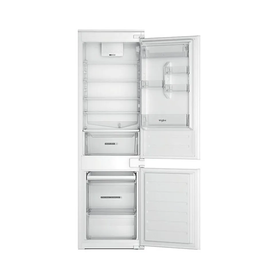 Alarme porte ouverte : OuiAutonomie (h) : 12Autre(s) équipement(s) : 2 plateauxCapacité : De 200 à 350 LClasse climatique : SN-T. Cet appareil est conçu pour être utilisé à une température ambiante comprise entre 10°C et 43°CClasse d’efficacité énergétique : EClasse d’efficacité énergétique de la source lumineuse : GClasse d’émission de bruit acoustique dans l’air : BClasse énergétique : EConso. d’énergie annuelle (kWh/an) : 227Conso. énerg. en 24h (kWh) : 0.62Couleur : IntégrableDégivrage congélateur : ManuelDimensions H x L x P (cm) : 177 x 54 x 54.5Dispositif de congélation rapide : OuiDistributeur d’eau : NonEmissions de bruit acoustique dans l’air (dB(A)) : 34Encastrement H x L x P (cm) : 177.6-178.6 x 56-57 x 56Hauteur (cm) : 177Hauteur encastrement (cm) : 177.6IEE : 100Largeur (cm) : 54Largeur encastrement (cm) : 56Mode de dégivrage congélateur : ManuelMode de dégivrage réfrigérateur : AutomatiqueNbre de balconnets contre-porte : 5Nbre de clayette(s) réglable(s) : 4Nbre de tiroir(s) : 3Nbre total de clayette(s) : 5Nombre d’étoiles : 4Poids (kg) : 50.6Porte à habiller : OuiPorte d’habillage fournie : Non (nécessite la pose d’une porte assortie à la cuisine)Porte réversible : OuiPosition du congélateur : BasPouvoir de congélation spécifique (kg/24h) : 4Profondeur (cm) : 54.5Profondeur encastrement (cm) : 56Réfrigérateur connecté : NonRéglage hiver : NonRégulation de la température : ElectroniqueSystème de porte : GlissièreTechnologie froid congélateur : StopFrostType : Réfrigérateur combiné intégréType d’éclairage : LEDType de clayette(s) : VerreType de construction : IntégrableType de dégivrage : AutomatiqueType de froid du congélateur : StatiqueType de froid du réfrigérateur : BrasséType de source lumineuse : LEDType réfrigérateur : Réfrigérateur – Congélateur en basT°C recommandée pour stockage optimisé des denrées alimentaires dans compartiment 4 étoiles (°C) : -18T°C recommandée pour stockage optimisé des denrées alimentaires fraîches (°C) : 4Volume (L) :