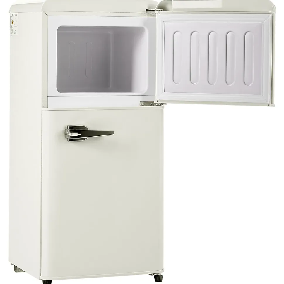 Caractéristiques【Style à deux portes】Ce réfrigérateur à deux portes présente un design compact et moderne, créant une atmosphère contemporaine et répondant à divers besoins. Grâce à sa conception compacte et autoportante, il peut être utilisé comme réfrigérateur d’appoint pour stocker des boissons et des collations dans le salon, la cuisine ou à côté du canapé. L’intérieur offre une capacité de 92 litres et est équipé d’un éclairage LED.【Haute efficacité énergétique】Ce réfrigérateur à deux portes se distingue par sa bonne efficacité énergétique et est classé F selon les dernières normes européennes. Il est équipé d’un congélateur **** (4 étoiles). Sa consommation d’énergie est de 102 kWh/an et son niveau sonore est de 45 dB. Il utilise le réfrigérant R600a ainsi qu’un compresseur performant pour garantir d’excellentes performances.【Deux compartiments séparés】Ce réfrigérateur à deux portes dispose d’un compartiment congélateur et d’un compartiment réfrigérateur indépendants. Cette conception permet d’éviter le mélange des odeurs entre différents aliments, facilitant une meilleure conservation et assurant un environnement plus hygiénique à l’intérieur du réfrigérateur.【Réglage de la température sur 7 niveaux】Utilisé comme réfrigérateur d’appoint, ce modèle propose sept niveaux de réglage de la température afin de répondre à différents besoins. Les utilisateurs peuvent ainsi choisir la température la plus adaptée aux aliments et boissons selon les saisons, ce qui en fait un appareil flexible et pratique.Dimensions et détailsDimensions du produit : 88,8 × 45,5 × 42,5 cmDimensions de l’emballage : 88,8 × 47,5 × 46,5 cmConsommation d’énergie annuelle : 102 kWh/anNiveau sonore : 46 dBCapacité totale : 60 LCompartiment congélateur : 22 LCompartiment réfrigérateur : 38 LClasse d’efficacité énergétique : EPoids net : 17 kgPoids brut : 19 kgPlage de réglage de la température : -27 °C à 13 °C