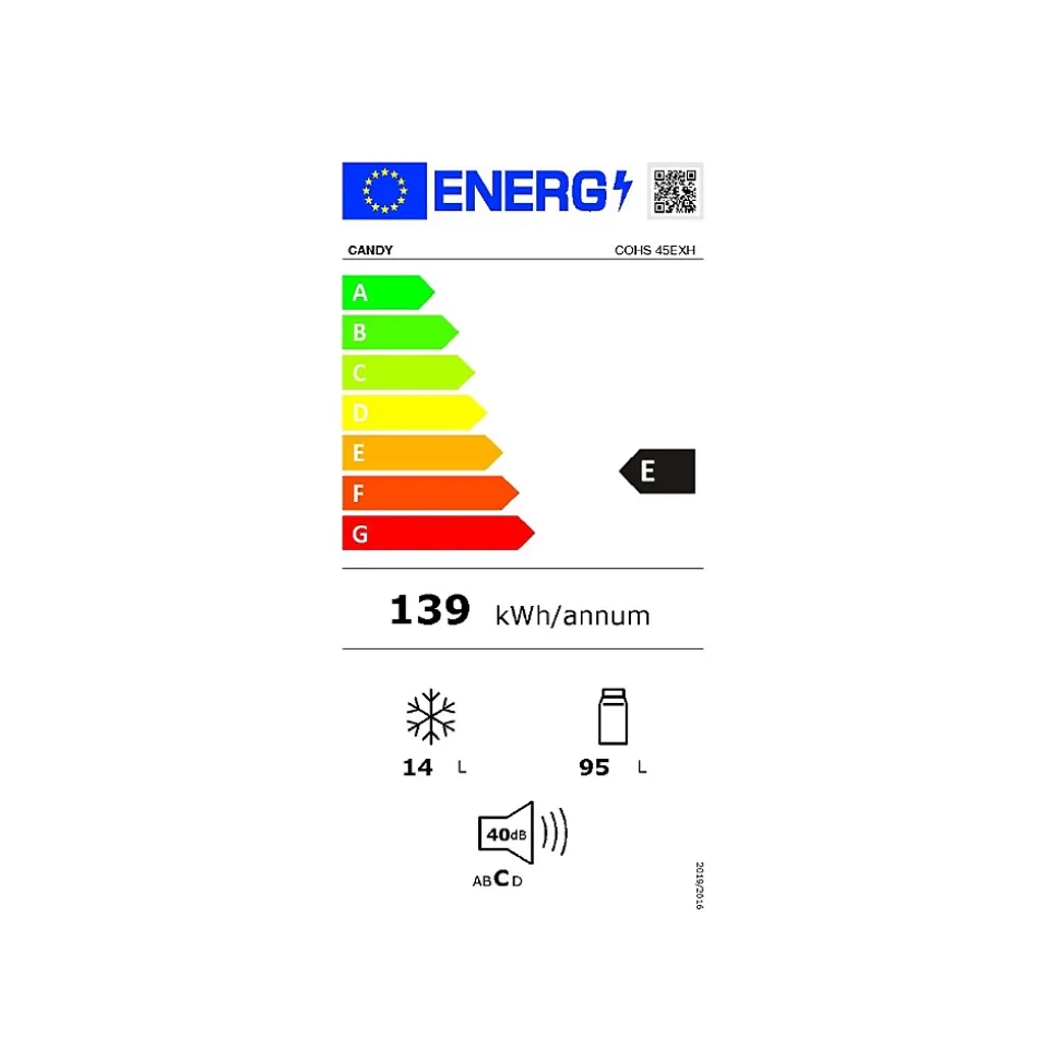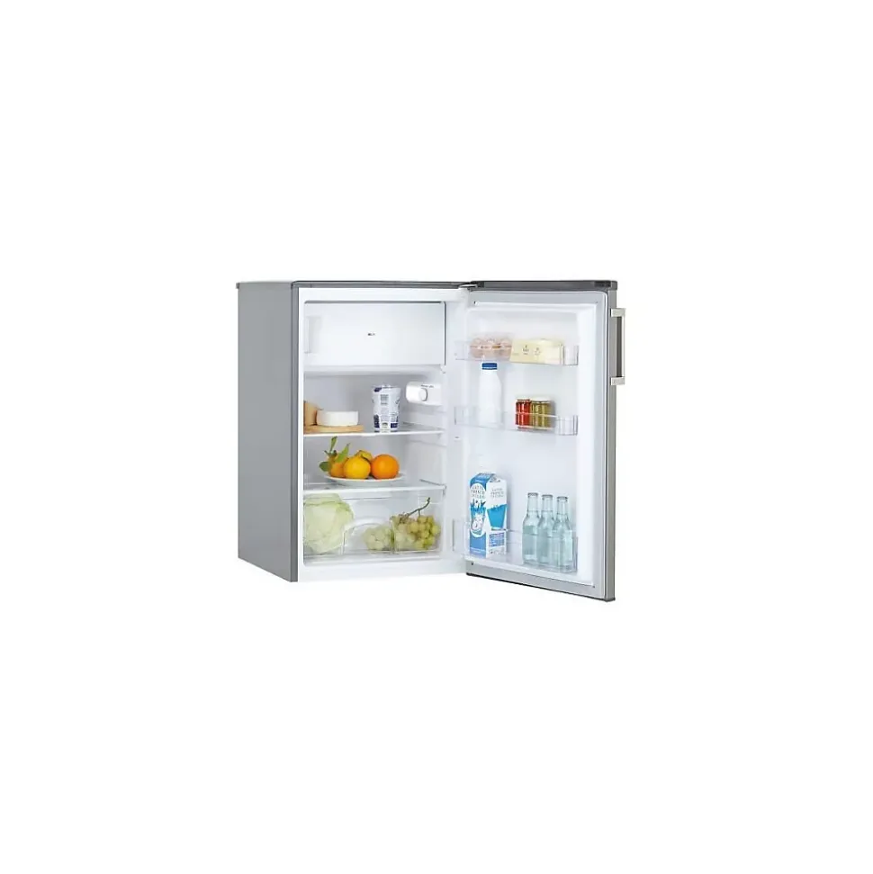 Réfrigérateur table top 55cm 109l inox Candy – Réfrigérateur table top COHS45EXH de Candy.ÉCLAIRAGE LED :L’éclairage LED offre une meilleure visibilité à l’intérieur du réfrigérateur, tout en réduisant la consommation d’énergie.PORTE RÉVERSIBLE :Adaptez votre réfrigérateur selon l’agencement de votre cuisine grâce à laporte réversible. – Type produit : RérigérateurType : Table topCapacité : 109 lClasse énergétique : EType de froid Statique Niveau sonore (dB) : 40Capacité nette totale (litres) 109 Classe climatique : N,STCouleur Inox Etendue de la température : 0-10°C/ ?-18°CConso. d’énergie (kWh/an) : 139Consommation électrique : 220-240 / 50HzGaz réfrigérant : R 600 aType de commande : ElectroniquePanneau de contrôle : InterneIndicateur de température : NonConnectivité : NonType de compresseur : StandardPorte réversible : OuiCapacité réfrigérateur net (litres) : 95Dégivrage réfrigérateur : Manuel NettoyantType de poignées réfrigérateur : ExterneType d’éclairage Power : LEDNombre de clayettes : 2Type de clayettes : Verre trempéBalconnets contre porte : 3Type balconnets : Plastique transparentBac à fruits et légumes : 1Capacité congélateur net (litres) : 14Nombre d’étoiles : 4Dégivrage congélateur : ManuelAutonomie en cas de panne (h) : 10Pouvoir de congélation (kg/24h) : 2,4Support à œufs : OuiSupport bouteilles : Non.Bac à glaçons : Oui.Pieds réglables (avant) : 2.Roulettes (arrière) : 2.Cable électrique (cm) : 100.Joint amovible : Oui.Couleur : Inox.Hauteur : 85 cm.Largeur : 55 cm.Profondeur : 58 cm.Poids : 28 kg.