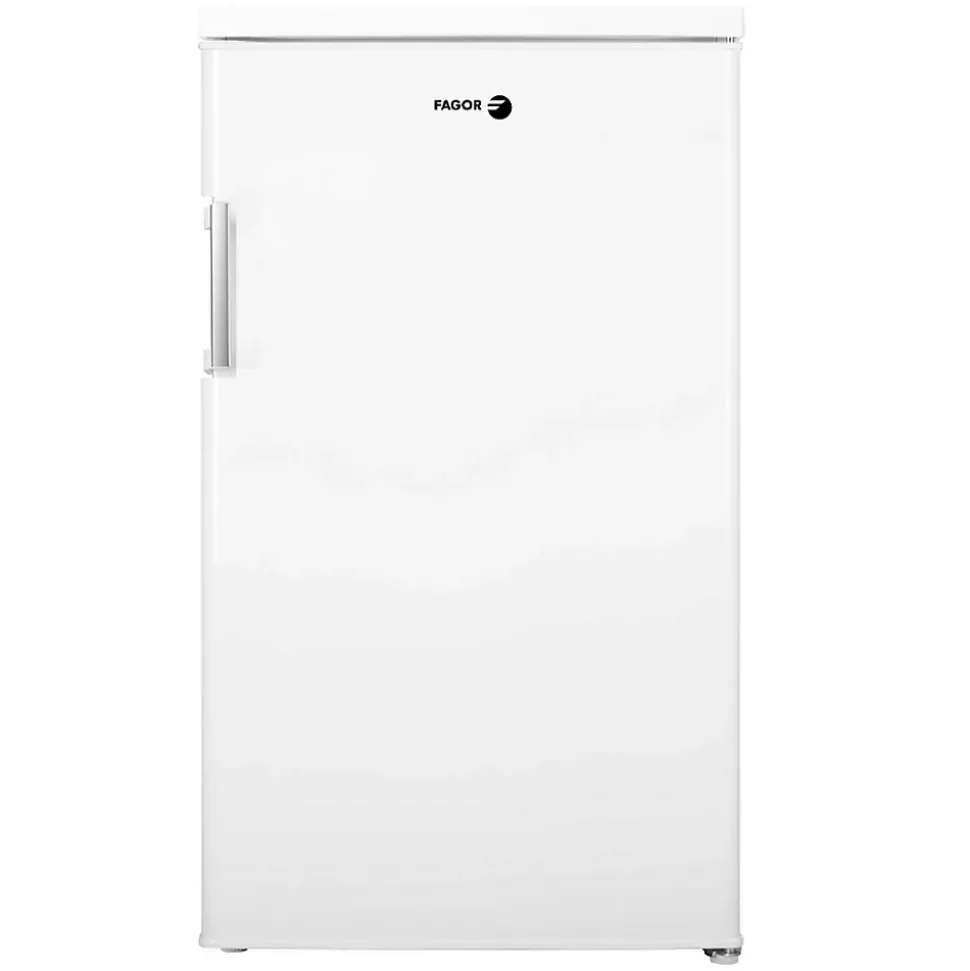 Réfrigérateur table top 56cm 120l blanc Fagor – Réfrigérateur Table Top Fagor FTT120E. – Type de produit : Réfrigérateur Table Top.Type de construction : Pose libre.IEE : 100.Volume total (L) : 120.Classe d’efficacité énergétique : E.Emissions de bruit acoustique dans l’air (dB(A)) : 40.Classe d’émission de bruit acoustique dans l’air : C.Conso. d’énergie annuelle (kWh/an) : 137.Classe climatique : N-ST. Cet appareil est conçu pour être utilisé à une température ambiante comprise entre 16°C et 38°C.Réglage hiver : Non.Volume compartiment réfrigérateur (L) : 107.T°C recommandée pour stockage optimisé des denrées alimentaires fraîches (°C) : 4.Volume compartiment congélateur (L) : 13.T°C recommandée pour stockage optimisé des denrées alimentaires dans compartiment 4 étoiles (°C) : -18.Mode de dégivrage congélateur : Manuel.Pouvoir de congélation spécifique (kg/24h) : 2.0.Type réfrigérateur : Réfrigérateur table top.Nbre de porte(s) : 1.Régulation de la température : Mécanique.Réfrigérateur connecté : Non.Distributeur 3 fonctions : Non.Bar intégré (Home Bar) : Non.Type de dégivrage du réfrigérateur : Automatique.Type de froid du réfrigérateur : Statique.Type de clayette(s) : Verre.Nbre total de clayette(s) : 1.Nbre de balconnets contre-porte : 3.Nombre d’étoiles : 4.Position du congélateur : Haut.Dégivrage congélateur : Manuel.Type de froid du congélateur : Statique.Eclairage intérieur : LED.Porte réversible : Oui.Type de poignée(s) : Externe.Distributeur d’eau : Non.Equipement réfrigérateur : Bac à légumes, 1 dessus de bac à légumes.Ecran : Non.Couleur : Blanc.Hauteur (cm) : 84.5.Largeur (cm) : 56.Profondeur (cm) : 57.5.Poids (kg) : 30.