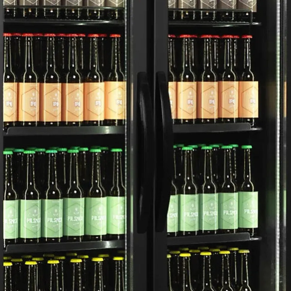 Réfrigérateur vitré noir 5 clayettes Mesures et contenu : Canettes 330 ml : 948 pcesCanettes 500 ml : 480 pcesBouteilles 330 ml : 528 pcesBouteilles 500 ml PET : 468 pcesPlate de température : 2 à 10 °CClasse climatique : 4Poids brut / net : 166 / 153 kgVolume brut / net : 707 / 535 lDesign et matériaux : Nombre et type de porte : 2 portes vitrées à charnièresPorte réversible : NonVitrage de sécurité : OuiNombre et type de tablettes : 5 clayettes blanchesCouleur de tablette : BlancDimensions des tablettes : 794 x 540 mmPieds : 4 pieds ajustablesRoulettes : 4 roulettesFinition extérieure : BlancFinition intérieure : Acier peint en blancÉclairage intérieur : LEDSerrure : OuiFroid et fonctions : Type de régulation : ÉlectroniqueType de réfrigération : VentiléType de dégivrage : AutomatiqueFluide frigorigène : R290Charge de gaz : 115 g