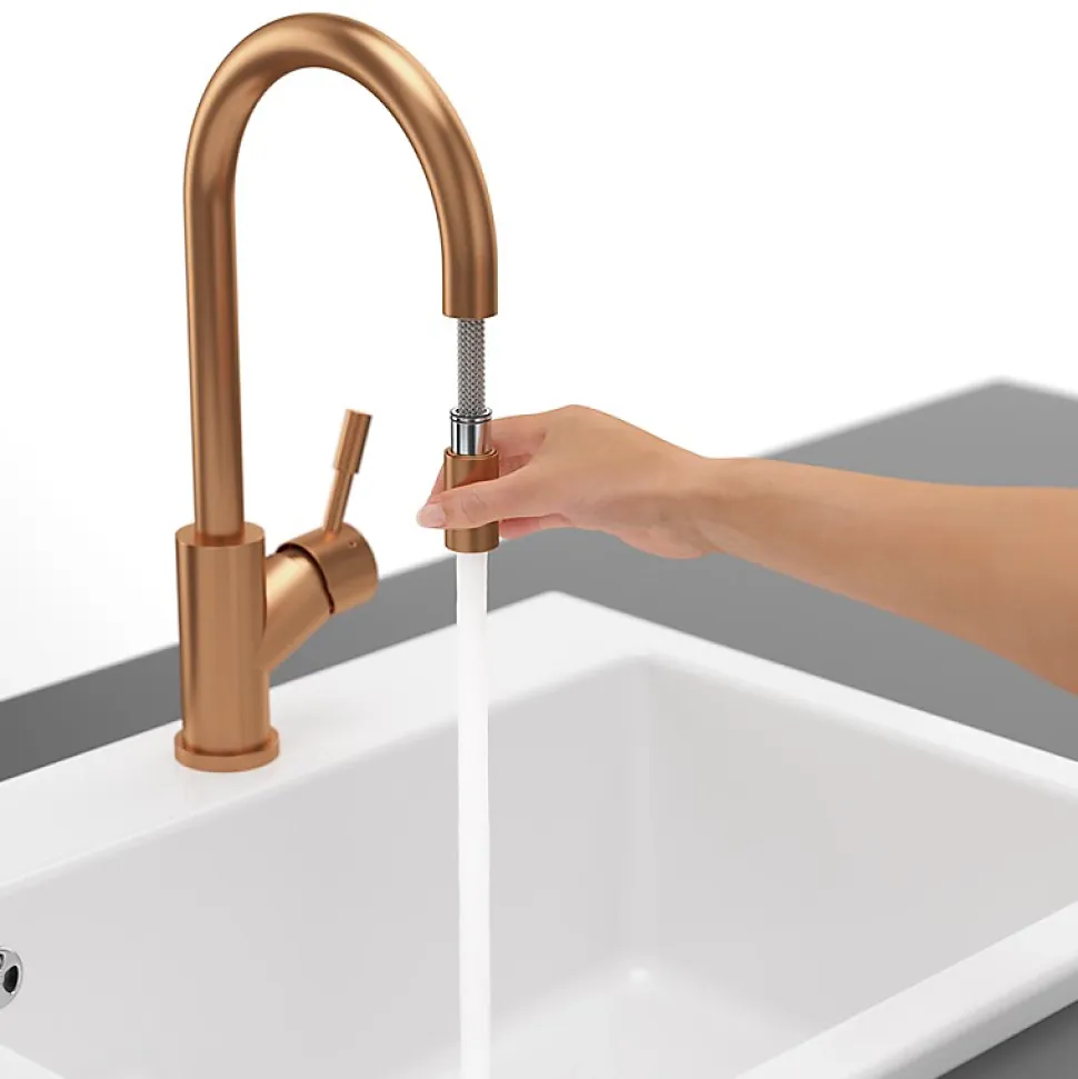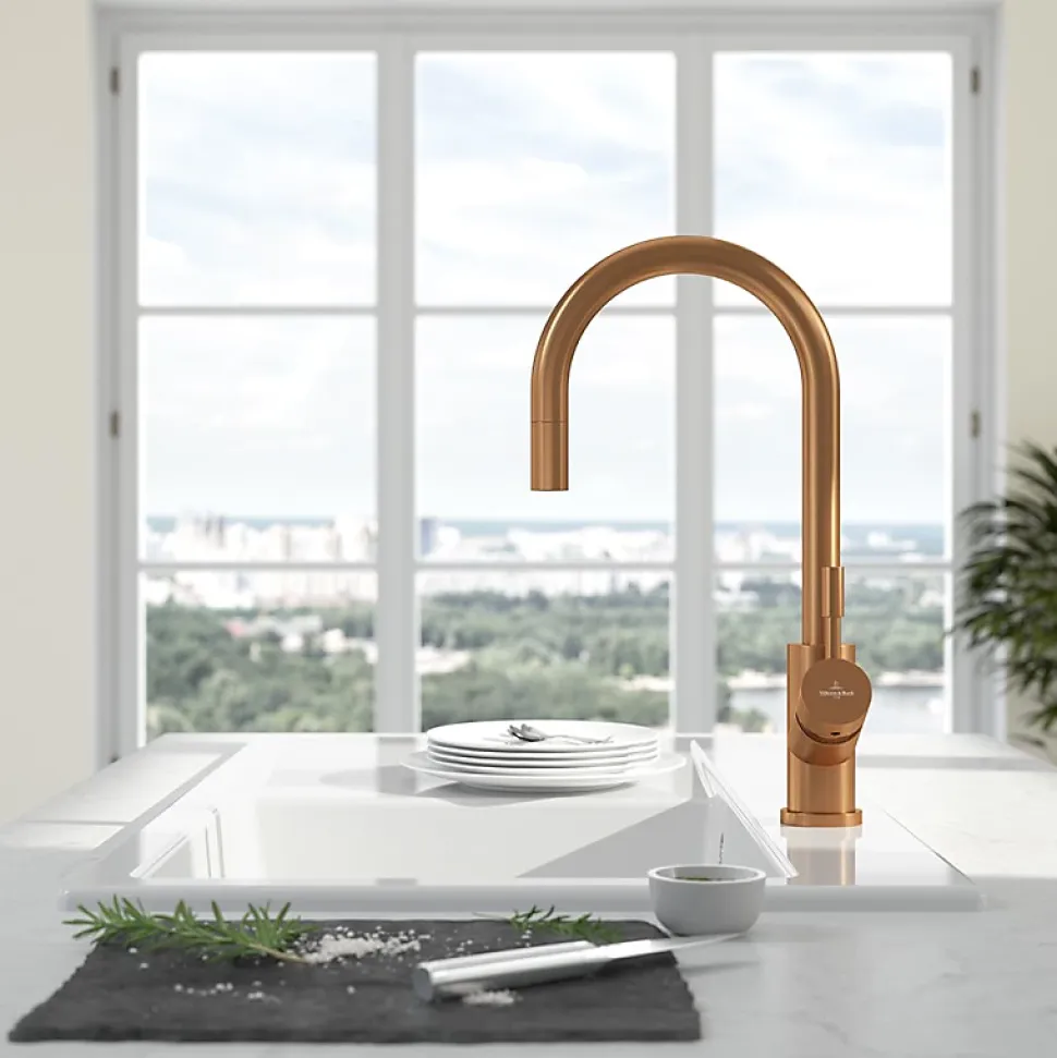 Avantages du robinet cuisine VILLEROY ET BOCH Umbrella flexHauteur offrant une grande liberté de mouvement, idéale pour faciliter le nettoyage et le remplissage de grands récipientsDouchette extractible pour une fonctionnalité optimale au quotidienJet confort ventilé, parfaitement calibré pour économiser l’eau tout en assurant un lavage efficacePivotement complet à 360° pour une flexibilité maximale sur l’évierRevêtement anti-traces et anti-tachesRobinet de cuisine en acier inoxydable, 100 % exempt d’acide, de goût et d’émissions, garantissant robustesse, durabilité et hygiène optimaleRevêtement PVD offrant une excellente résistance aux UV et aux chocsOuverture à froidCaractéristiques techniques du robinet cuisine VILLEROY ET BOCH Umbrella flexColoris : BronzeLongueur : 21,5 cmLargeur : 4,5 cmHauteur : 30,9 cmCollection : UmbrellaMatériau : acier inoxydableCartouche : plastique avec bague en céramiqueRayon de pivotement : 360°Angle d’ouverture du levier : 25°Débit du jet confort : 11,5 L/minFlexibles fournis : 60 cmType de pose : monotrouApplication : cuisineMatériau : acier inoxydableRevêtement : PVD résistant aux UV, aux chocs, anti-traces et anti-tachesCartouche : plastique avec bagues d’étanchéité en céramiqueFlexibles d’alimentation : fournis – longueur 60 cmFlexible de douchette : intégré et rétractable – longueur 180 cm