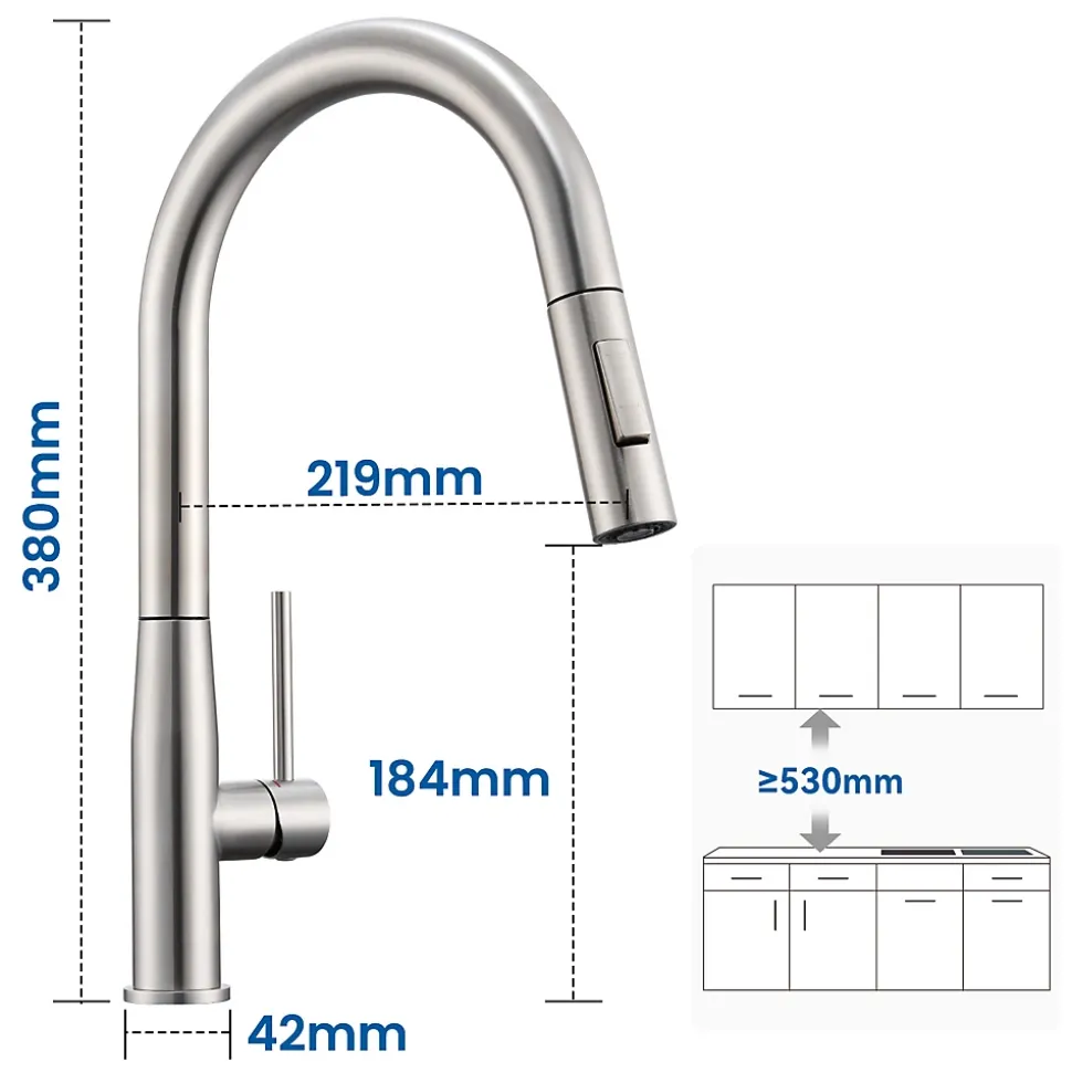 Ce robinet de cuisine en acier inoxydable 304 allie robustesse et élégance, avec une résistance exceptionnelle à la corrosion pour une longévité maximale. Son système innovant combine une tête extractible 2-en-1 (mode bulle doux et jet puissant) et une rotation à 360° pour un nettoyage optimal de l’évier, tandis que le flexible en nylon tressé de 1,5m offre une grande liberté de mouvement. Doté d’une cartouche céramique premium et d’un filtre silencieux intégré, il garantit précision, tranquillité et purification de l’eau. Le tuyau d’arrivée KTW certifié et la garantie internationale assurent une sécurité absolue. Avec son installation facile (compatible plans de travail jusqu’à 35mm), offrant à la fois performance, durabilité et confort d’utilisation au quotidien.