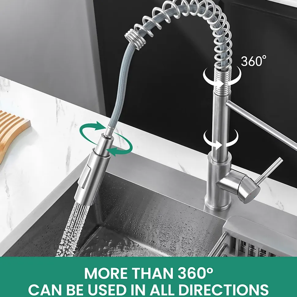 - ✔ Construction en Acier Inoxydable Premium – Fabriqué avec un flexible à ressort et un mécanisme de rotation en acier inoxydable, garantissant une longévité exceptionnelle et une résistance à la corrosion.