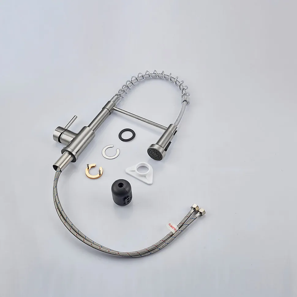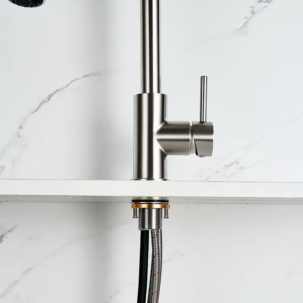 Robinet de cuisine avec douchette, Rotation 360, 2 jets, Finition brossée Acier Inoxydable 304, Pour évier standard