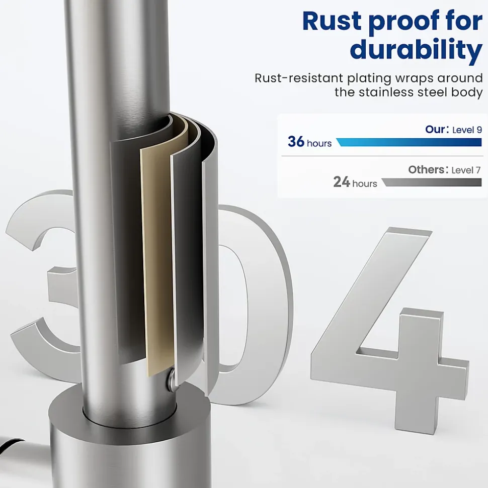 Décorez votre cuisine avec élégance grâce à ce robinet en acier inoxydable 304 au fini doré brossé PVD, résistant aux rayures et facile à nettoyer. Conçu pour durer, il intègre une cartouche céramique haute performance (500 000 cycles) pour un réglage précis de la température (0-90°C) sans fuite. Son mousseur amovible offre un dévit doux et anti-éclaboussures (30% d’économie d’eau), tandis que son système de filtration intégré réduit les impuretés et le bruit de l’eau. Compatible avec les plans de travail jusqu’à 40 mm d’épaisseur, il inclut un flexible certifié KTW et des accessoires premium (écrou à serrage rapide, tube fileté en inox) pour une installation simplifiée.