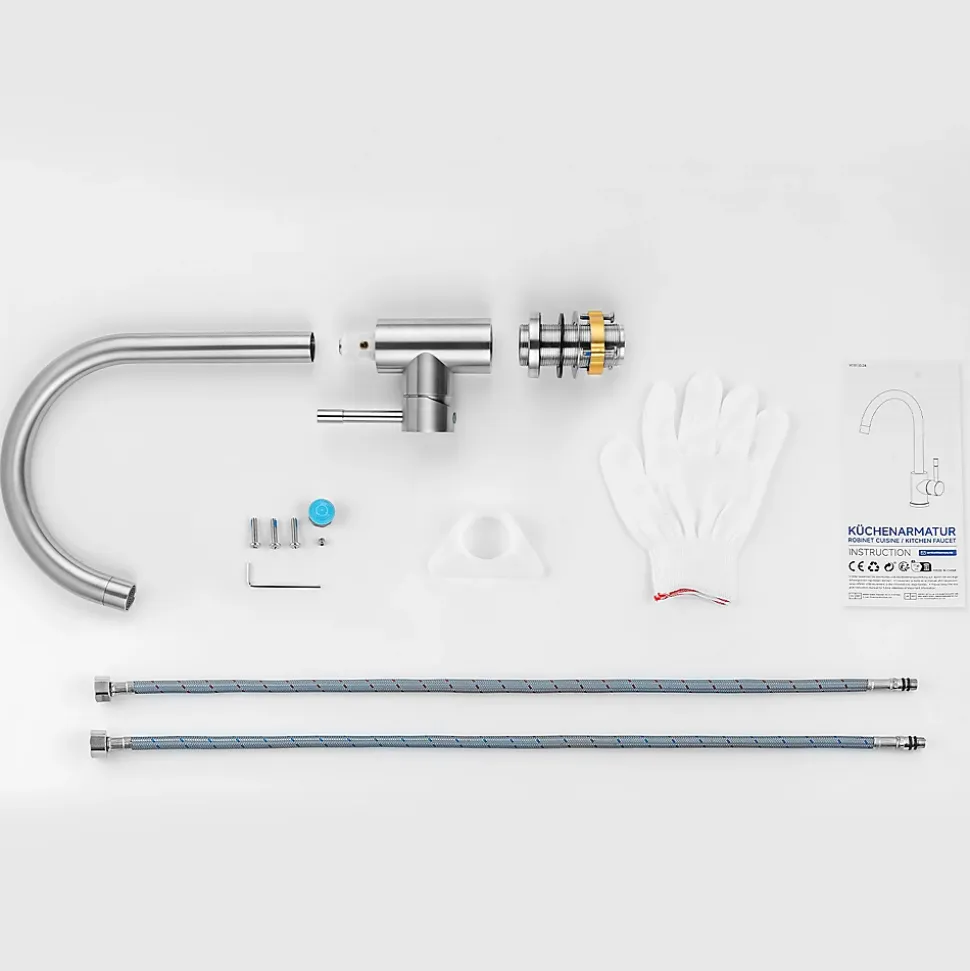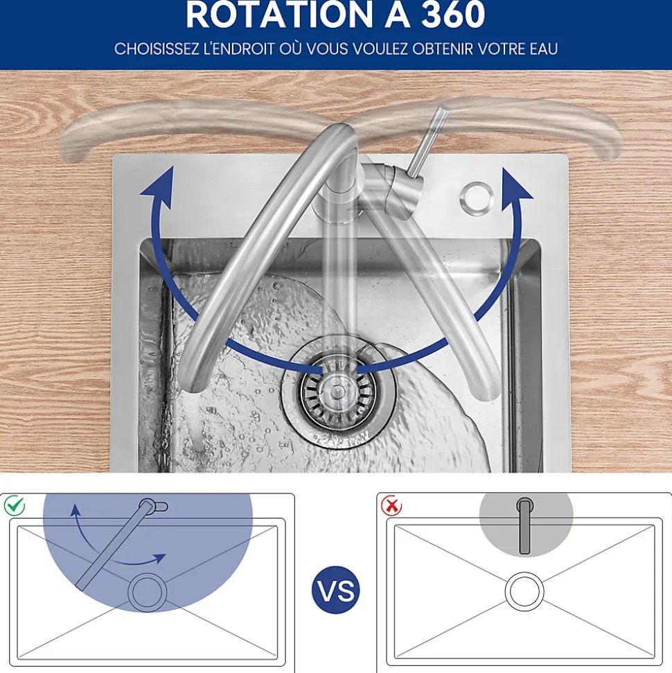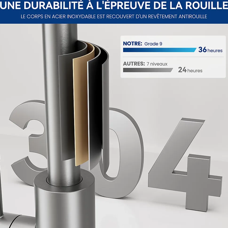 - ✔ Installation express : Fourni avec écrou à serrage rapide et tube fileté inox (70 mm) pour plans de travail ≤40 mm.