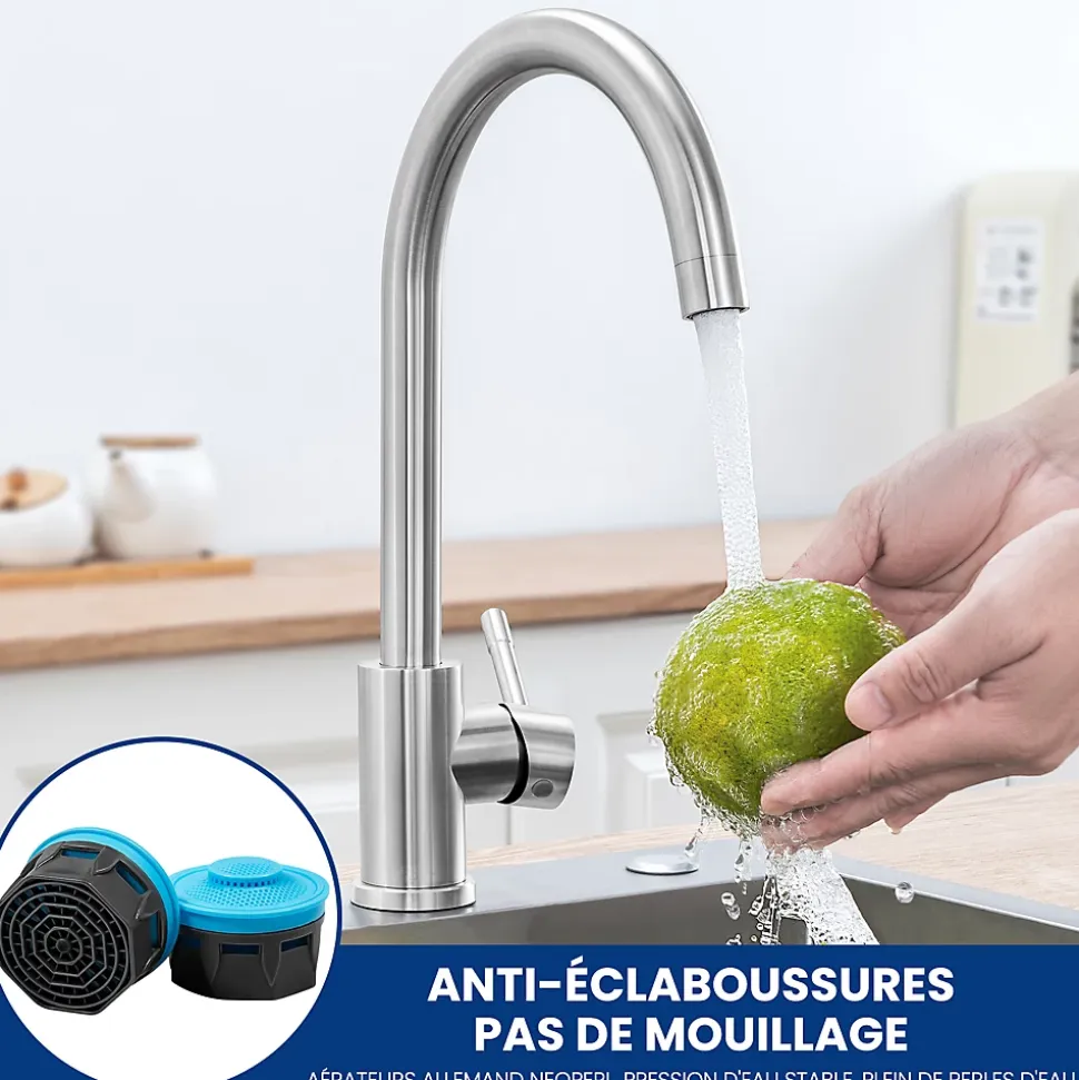 - ✔ Économie d’eau : Mousseur amovible réduisant la consommation de 30%, sans éclaboussures.