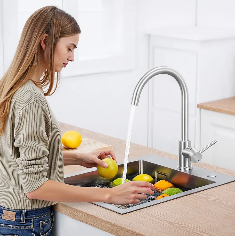 Décorez votre cuisine avec élégance grâce à ce robinet en acier inoxydable 304 au fini doré brossé PVD, résistant aux rayures et facile à nettoyer. Conçu pour durer, il intègre une cartouche céramique haute performance (500 000 cycles) pour un réglage précis de la température (0-90°C) sans fuite. Son mousseur amovible offre un dévit doux et anti-éclaboussures (30% d’économie d’eau), tandis que son système de filtration intégré réduit les impuretés et le bruit de l’eau. Compatible avec les plans de travail jusqu’à 40 mm d’épaisseur, il inclut un flexible certifié KTW et des accessoires premium (écrou à serrage rapide, tube fileté en inox) pour une installation simplifiée.