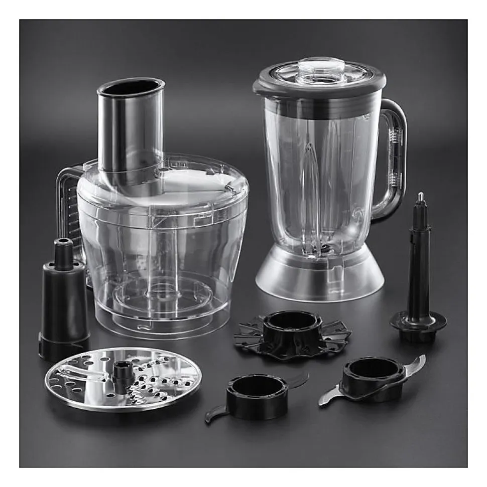 - Robot multifonction polyvalent avec 7 accessoires inclus (hâchoir, mixeur, trancheuse, râpe, lames pétrin, batteur et bol mélangeur).