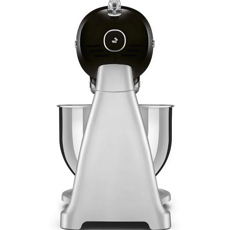 Robot pâtissier multifonctions 4.8l 800w noir Smeg – Robot sur socle Style des années 50 SMF04BLEU de Smeg.Le design de style années 1950 du batteur sur socle incarne à la fois la performance et l’élégance, servant d’outil fonctionnel qui apporte sophistication et style à la cuisine.Dix réglages de vitesse pour une adaptation optimale aux différentes consistances de pâte afin de garantir d’excellents résultats à chaque fois.Système de démarrage en douceur, pour un mélange parfait des ingrédients et moins d’éclaboussures.Moteur puissant et mouvement de rotation planétaire pour un mélange parfait des ingrédients.Utilisation polyvalente grâce aux trois accessoires inclus : fouet, batteur plat et crochet pétrisseur.Des sorbetières aux sets de pâtes, une large gamme d’accessoires disponibles séparément.Système de mélange stable : minimise les vibrations de la machine pendant le processus de mélange, permet une ouverture en douceur de la tête du moteur et l’empêche de se fermer accidentellement. – Type de produit : Robot sur socle.Esthétique : Style des années 50.Surface : Haute brillance.Niveaux de vitesse : 10.Puissance du moteur : 800 W.Capacité de remplissage maximale du bol de mélange : 4,8 L.Quantité max. de remplissage blancs d’œufs/œufs moyens : 12.Quantité minimale de remplissage blancs d’œufs/œufs de taille .moyenne : 2.Quantité max. de garniture de pâte feuilletée : 2,6 kg.Quantité max. de pâte à gâteau : 2,8 kg.Quantité max. de remplissage de pâte aux œufs : 500 g de pâte avec 5 œufs moyens.Quantité max. de remplissage de pâte à pain, à pizza ou à pâtes : 1,9 kg de pâte totale (max. 1,2 kg de farine/min. 55 % d’hydratation).Quantité max. de crème fouettée à remplir : 1 litre.Quantité minimale de garniture de crème fouettée : 100 ml.Couleur de la couverture avant (cicatrice) : Argent.Matériau de la couverture avant (grain) : Plastique.Matériau