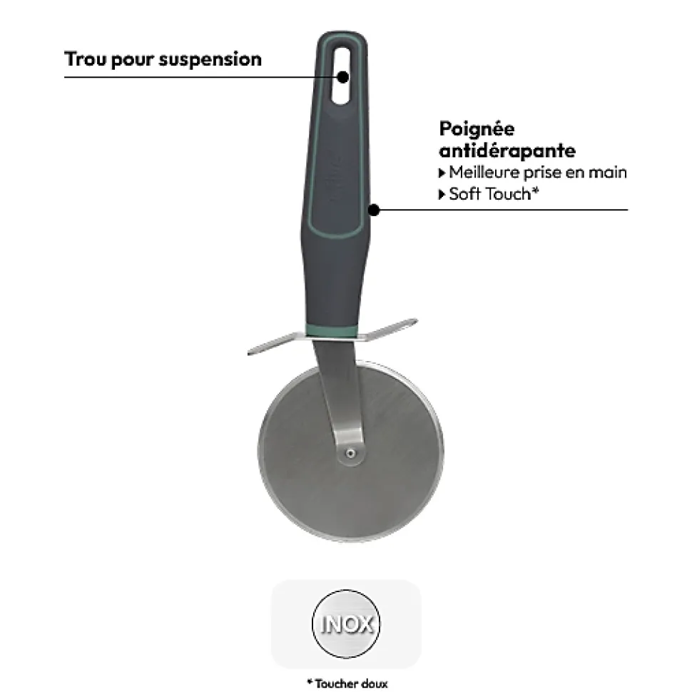 Roulette à pizza « Néo » en inoxContenu : 1 roulette à pizzaDimensions : L. 8 x P. 3 x H. 23 cmColoris : Gris clairMarque : 5 five simply smart