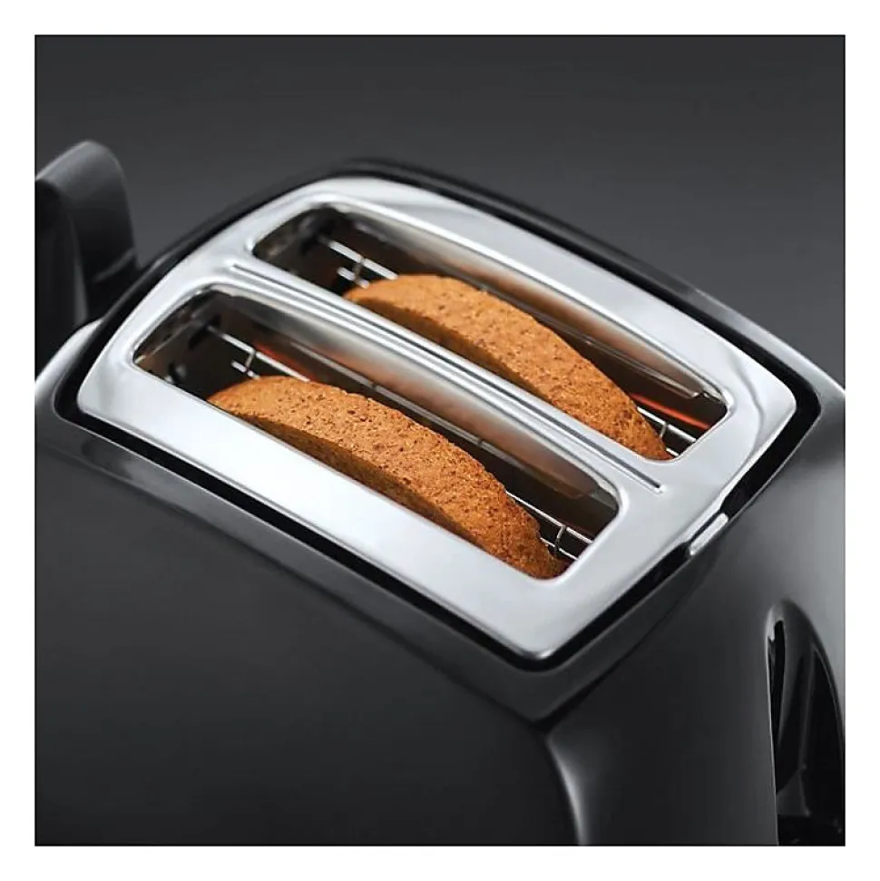 Le toaster Russell Hobbs Textures Plus 22601-56 offre un design élégant noir ultra brillant/mat, 2 fentes extra larges, 6 niveaux de dorure réglables, plateau de réchauffage, fonction décongélation, annulation et réchauffage, pince intégrée et centrage automatique du pain pour une cuisson optimale.