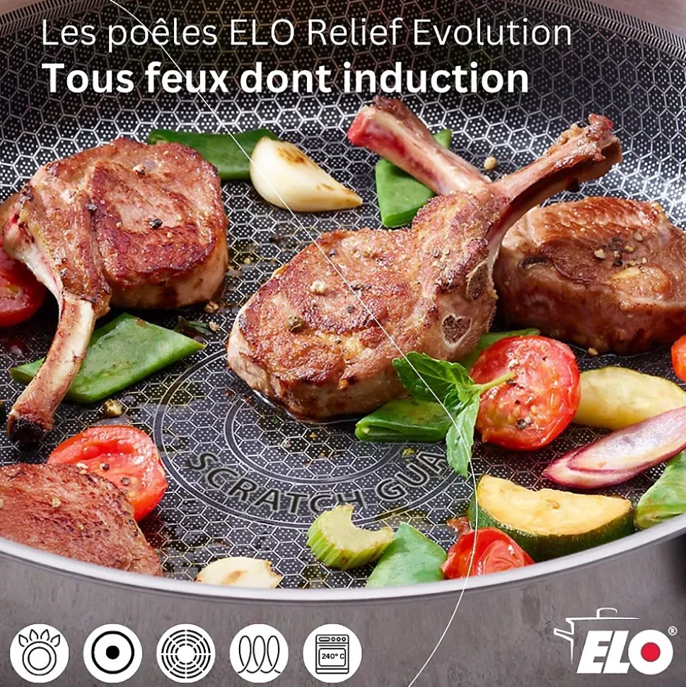 - DESCRIPTION: La sauteuse droite 28 cm Elo Relief Evolution allie les avantages d’une poêle en acier inoxydable à ceux d’une poêle antiadhésive ; parfaite pour cuisson croustillante et saine