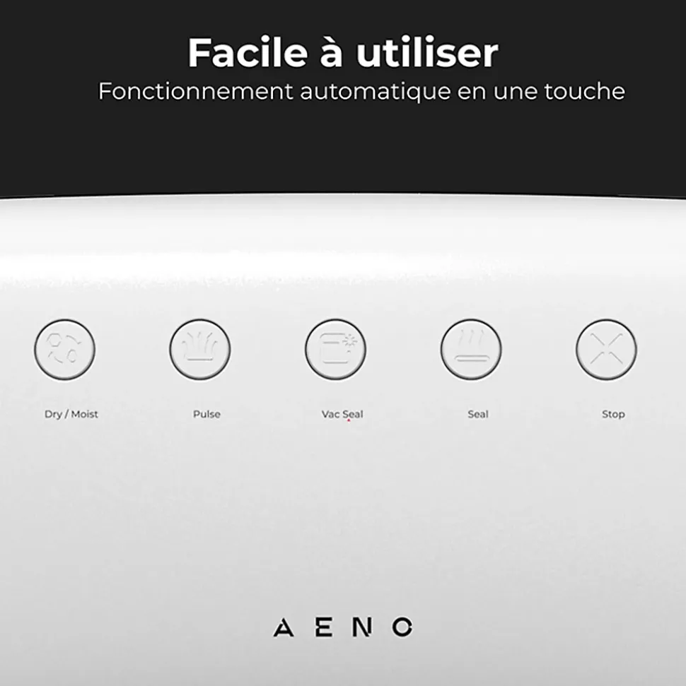 La marque :AENO est une marque d’appareils électroménagers intelligents offrant des produits de haute qualité, un service client et un design innovant. Description produit :Le scelleur sous vide AENO VS2 conserve vos aliments plus longtemps tout en économisant de l’espace. Avec ses différents modes et accessoires, il simplifie la conservation et la préparation des repas. Caractéristiques Principales : Conservation : Prolonge la fraîcheur jusqu’à 5 fois plus longtemps. Puissance : Aspiration de 75 kPa, débit 4,5 L/min. Polyvalent : Pour aliments secs et humides. Modes : Impulsion, aspiration & scellage, scellage seul. Indicateurs LED : Rouge pour sec, bleu pour humide. Utilisation : Fonctionnement à une touche, bouton d’arrêt rapide. Design compact : Facile à ranger.Spécifications : Puissance : 75 kPa Débit : 4,5 L/min Sacs jusqu’à 30 cm de largeInclus : Adaptateur pour conteneur, 10 sacs (5 x 15 cm × 20 cm, 5 x 20 cm × 30 cm) Temps de Scellage : 10 sec par sac