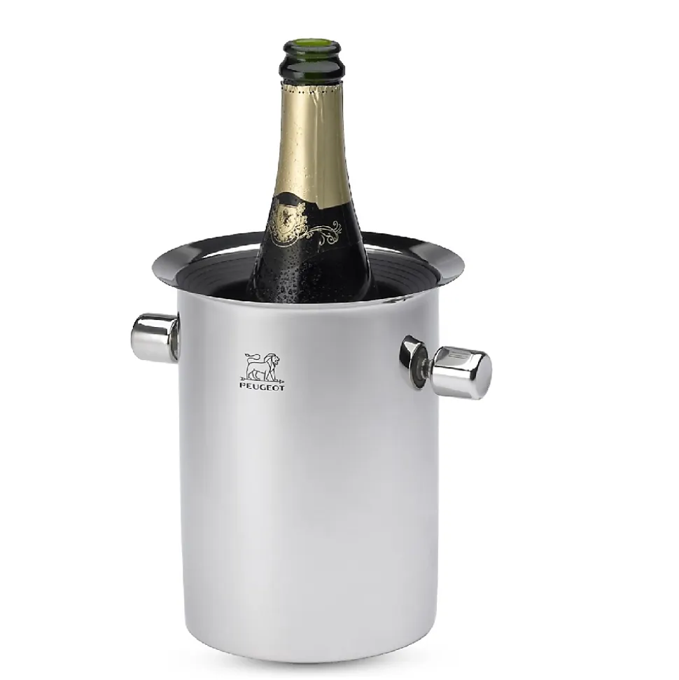 Gardez votre champagne à la bonne température avec le seau à champagne équilibreur thermique de Peugeot. Ce seau à champagne au design en inox chromé est accompagné de 4 glacettes. Matière : Inox Couleur : Argent Hauteur : 19 cm Diamètre : 16 cm