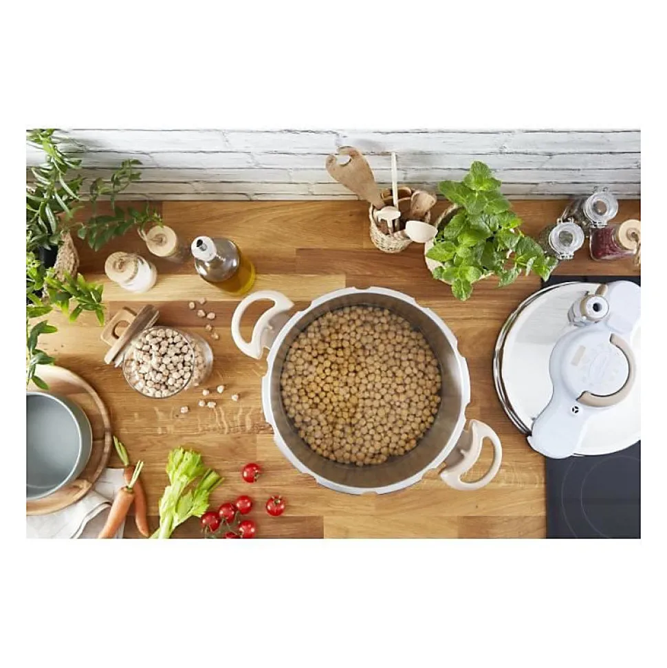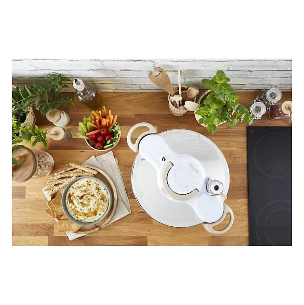 Fabriquée a partir d’acier inoxydable recyclé a 80% – Recyclable a 90 % – Ouverture et fermeture d’une seule main – 5 dispositifs de sécurité – Poignées fixes – Indicateur de pression – Compatible lave-vaisselle sauf joint et soupape