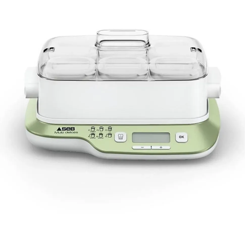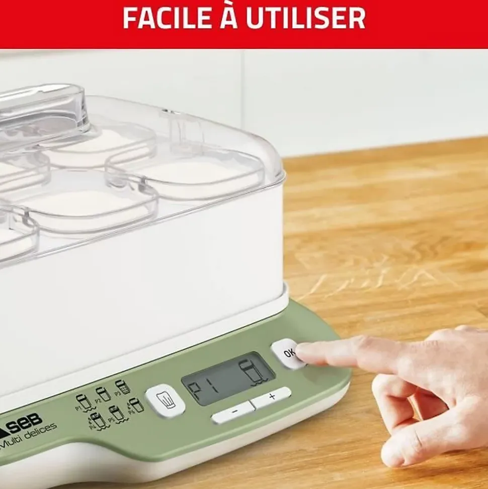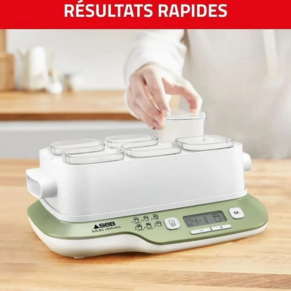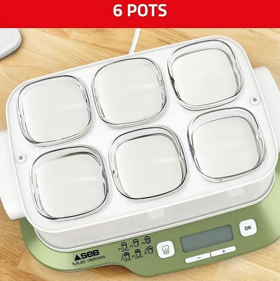 SEB Yaourtiere 6 pots, 6 programmes dont 1 mode express, Yaourts et desserts maison, Utilisation simple, Fabriqué en France YG660A11Avec la yaourtiere Multi Delices Express & Vegetal de Seb, préparez facilement et rapidement des yaourts maison, du fromage frais et une large variété de desserts lactés et végétaux. 100 % sans BPA pour une sérénité totale.