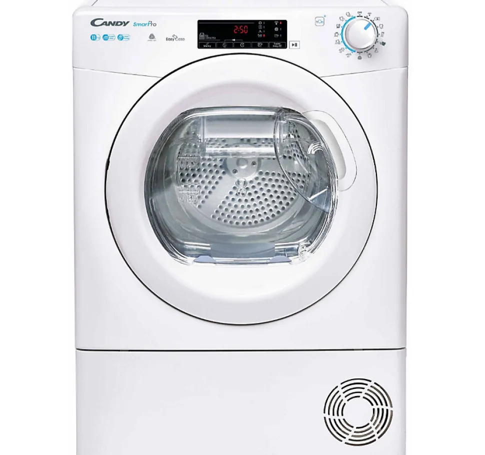 Sèche-linge pompe à chaleur à condensation 60cm 11kg Candy – Sèche-linge pompe à chaleur Candy CSOEH11A2TE-S grande capacité de 11kg. Le tambour permet de sécher jusqu’à 11 KG de linge. Capacité unique sur le marché dans un encombrement standard ! Connectivité Wifi + Bluetooth : Grâce à l’application SimplyFi, accédez à 40 programmes supplémentaires et recevez des alertes pour entretenir votre sèche-linge. Programmes courts : 7 programmes rapides en accès direct, dont un Quotidien Parfait en 59 min, clairement identifiés par un code couleur sur la manette. Bac à eau Easy Case : Un bac récupérateur d’eau situé dans la porte. Il est facile à transporter et à vider. Le niveau d’eau peut être contrôlé en un coup d’?il. – Type de produit : Sèche-linge frontal.Capacité nominale (kg) : 11.Type de séchage : Condensation.Classe d’efficacité énergétique : A ++.Consommation d’énergie annuelle pondérée (AE C) en kWh/an : 311.Type de sèche-linge : Sèche-linge domestique à tambour automatique.Consommation d’énergie pour le programme coton standard à pleine charge (kWh) : 2.83.Consommation d’énergie pour le programme coton standard à demi-charge (kWh) : 1.24.Consommation électrique en mode arrêt (P o) en W : 0.3.Consommation électrique en mode laissé sur marche (P l) en W : 0.7.Programme coton : Le »programme coton standard » à pleine charge et à demi-charge est le cycle de séchage standard auquel se rapportent les informations qui figurent sur l’étiquette et sur la fiche. Ce programme convient pour le séchage de textiles en coton normalement humides et il constitue le programme le plus efficace en termes de consommation d’énergie pour le coton.Durée pondérée du cycle (T t) pour le programme coton standard à pleine charge et à demi-charge (min) : 239.Durée du programme coton standard à pleine charge (min) : 345.Durée du programme coton standard à demi-charge (min) : 160.Classe du taux de condensation :