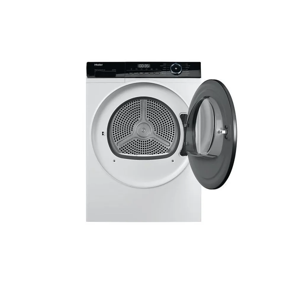 Sèche-linge Haier I-Pro Series 3 HD100-A2939 10 kg pompe à chaleur. 15 programmes dont Soin bébé, Coton, Délicat, Mix et Rapide. Fonctions I-Time et I-Refresh, filtre 3 en 1, tambour 112 L, départ différé jusqu’à 24 h, éclairage intérieur et sécurité enfant.