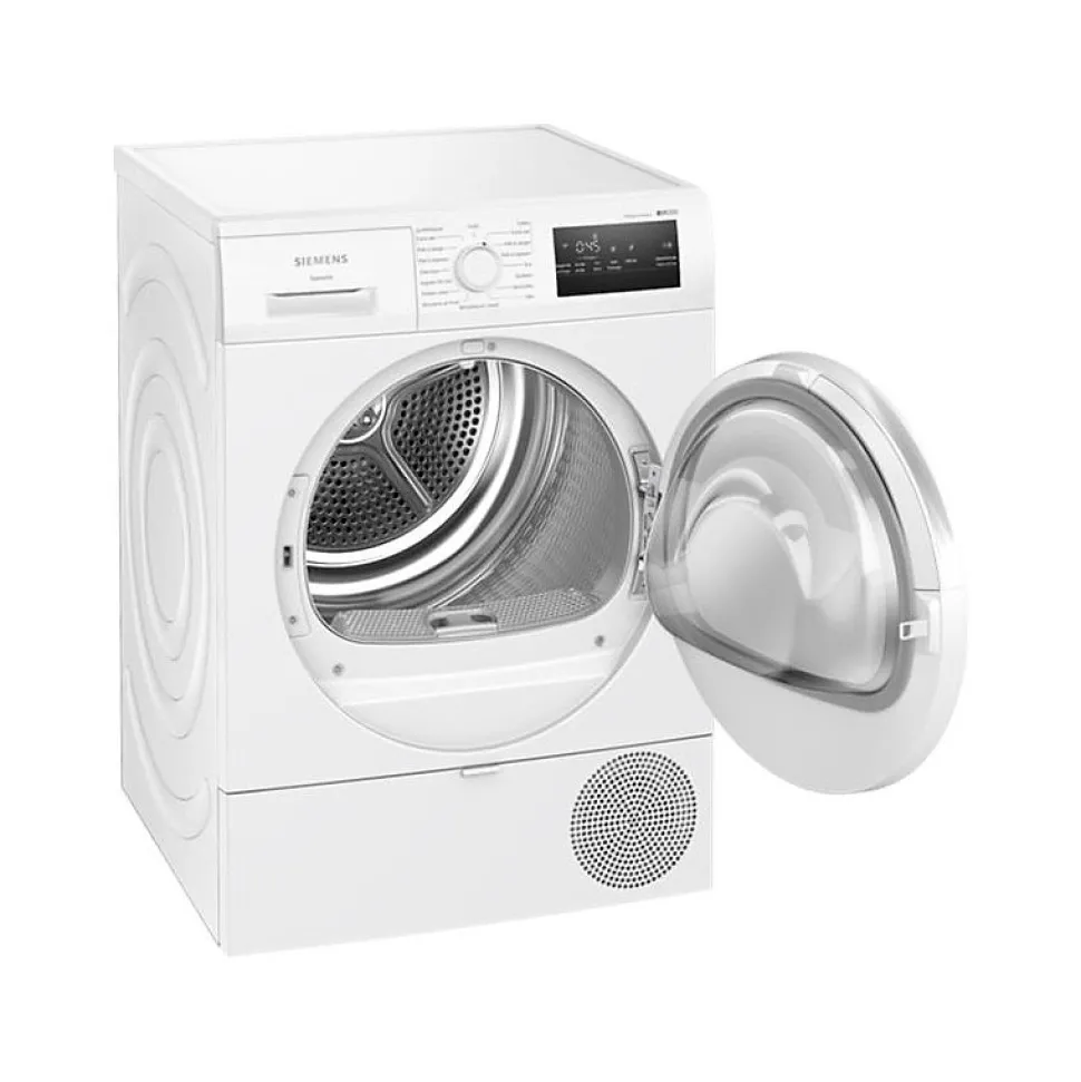 Le sèche-linge pompe à chaleur Siemens WT43H00DFR allie innovation et efficacité avec sa technologie autoDry et iSensoric qui ajustent automatiquement le temps de séchage selon le degré d’humidité, protégeant les textiles délicats. Sa classe A++ et consommation annuelle de 216 kWh garantissent une performance énergétique optimisée. Avec une capacité de 8 kg, un fonctionnement silencieux à 63 dB, et un tuyau de vidange inclus, il est pratique et économique. Il propose aussi des programmes spécialisés comme le mode Outdoor, et un tambour softDry de 112 litres pour un soin maximal du linge.