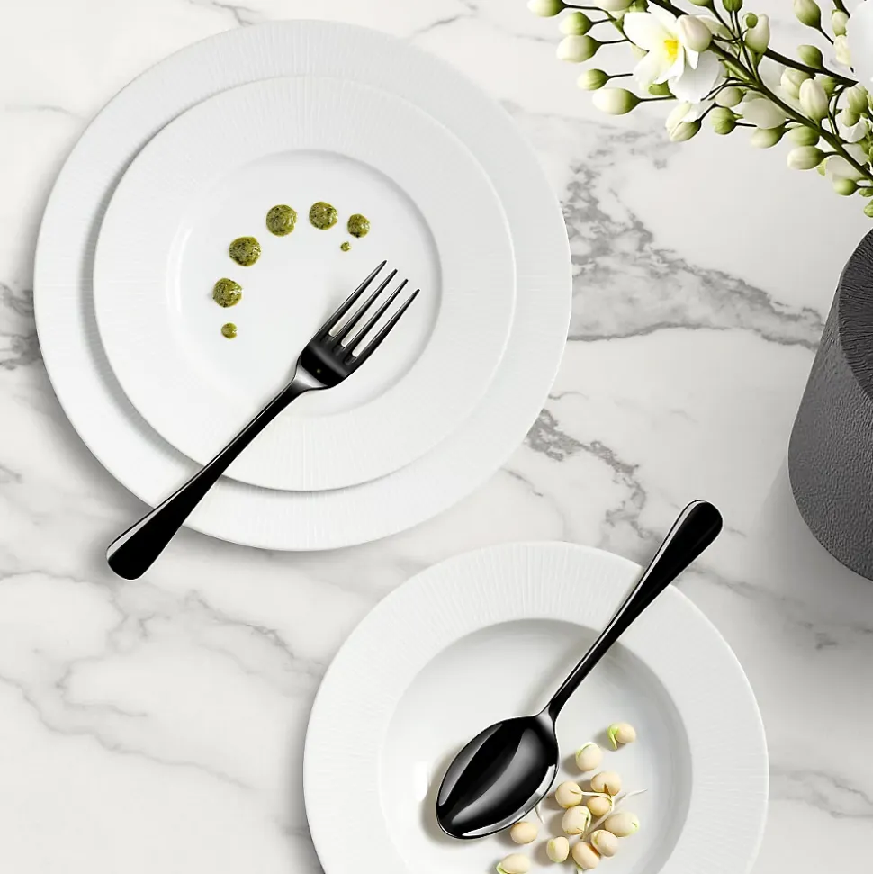 Ensemble de 6 assiettes plates, 6 assiettes dessert et 6 assiettes salade et pâtes de la collection Linus par Médard de Noblat. La collection Linus dévoile un décor rayonnant en relief sur l’aile des assiettes, alliant subtilité et sobriété. Son design élégant s’adapte avec harmonie à toutes les ambiances de la table, offrant une touche raffinée et polyvalente. Médard de Noblat perpétue un savoir-faire et une tradition de qualité depuis 1836. Notre vaisselle de porcelaines et de grès créé des univers actuels et raffinés, entre rigueur et exubérance, pour un quotidien hors norme. Dimensions Assiette plate 27 cm, assiette dessert 21 cm, assiette salade et pâtes 20 cm