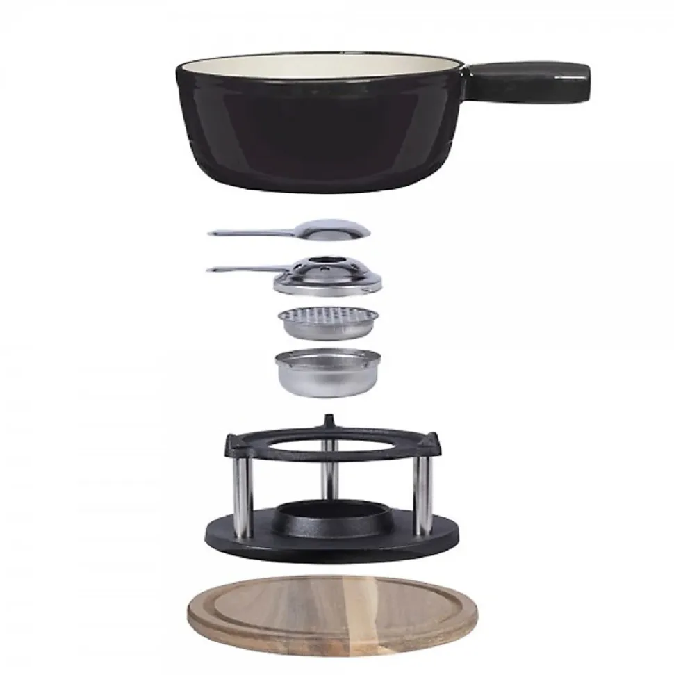 Le Casserole Livoo Service à fondue tradition noir est parfait pour vos repas en groupe avec sa capacité de 2,6 litres et son design élégant en fonte émaillée. Inclus 6 fourchettes en bois d’acacia. Compatible tous feux, dont induction.